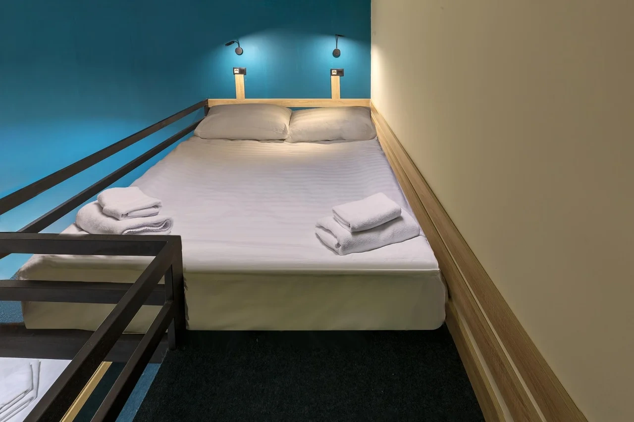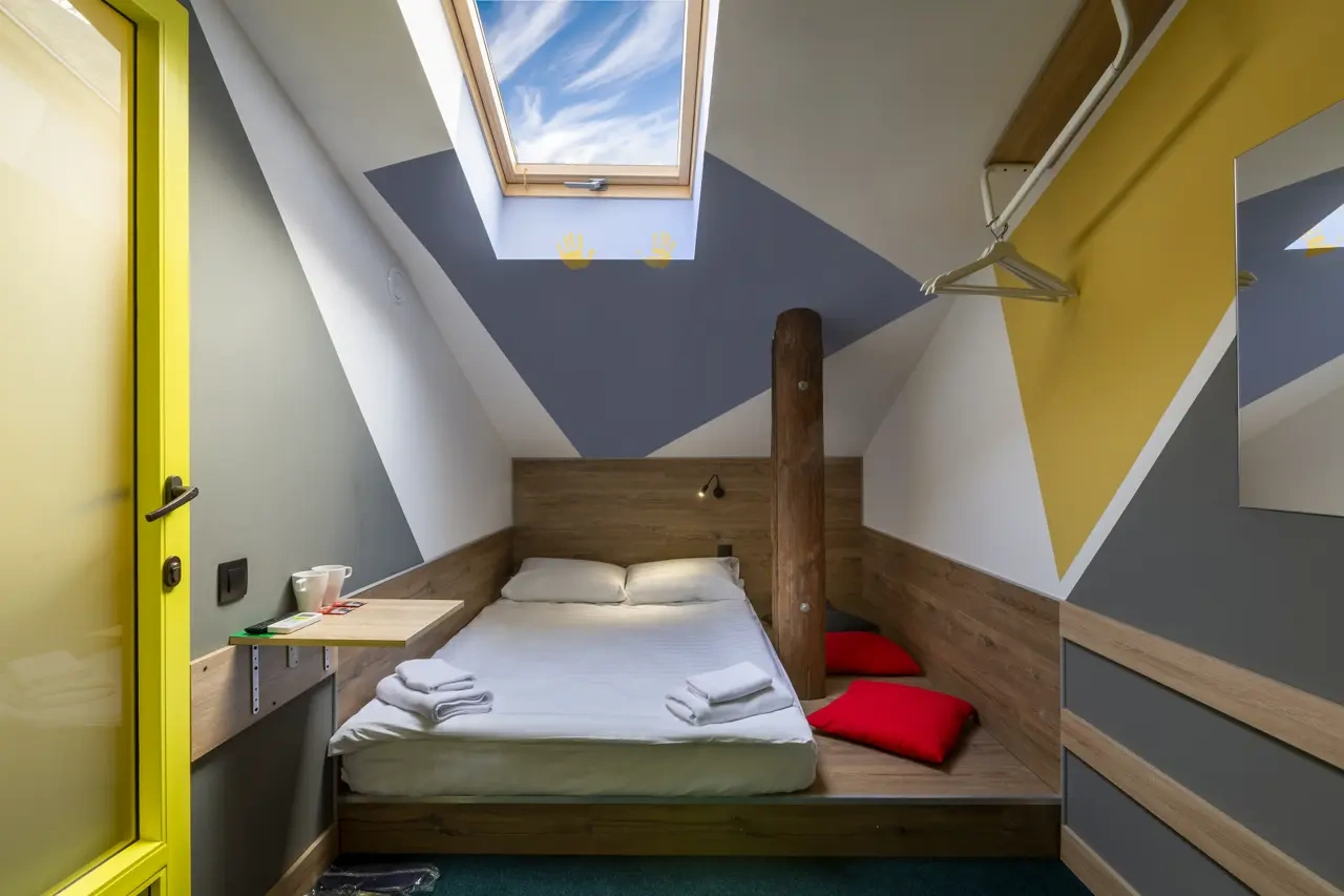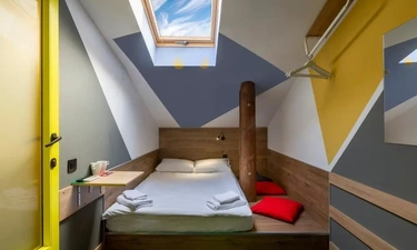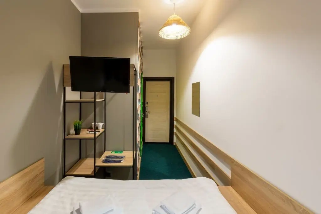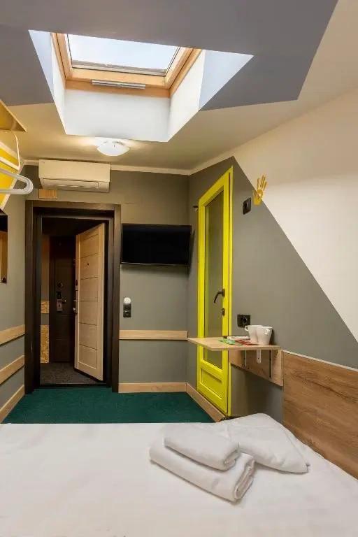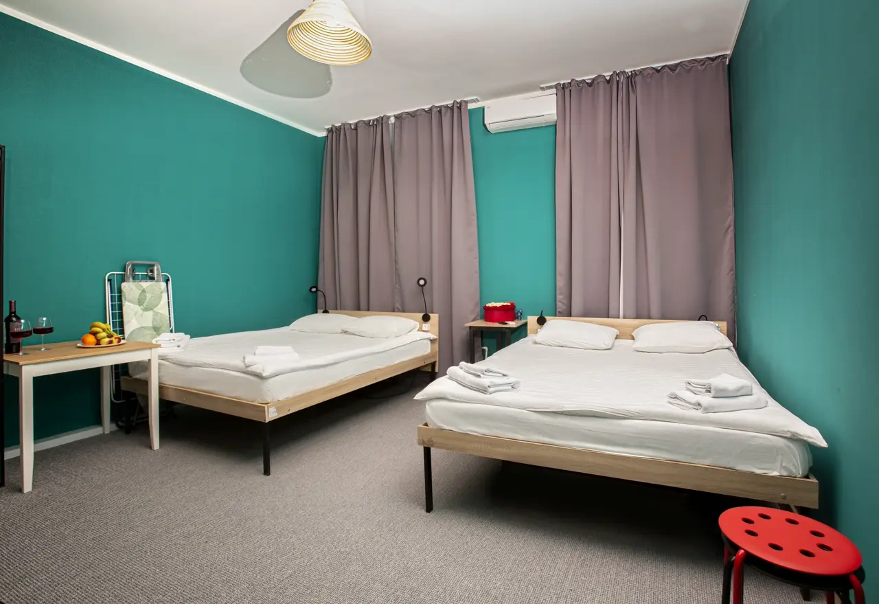 Двухместные номера данной категории находятся на 3 этаже и отличаются небольшой площадью и наличием мансардного окна. Приятная обстановка, в том числе ортопедический матрас Askona, заправленный белоснежным постельным бельем из страйп-сатина, свидетельствуют о внимании к деталям. В номере- WIFI и телевизор, подключенный к каналам через интернет. Ванная комната отделана яркой глянцевой плиткой. Пл0щадь каждого из 15 номеров данной категории составляет от 9 до 10 кв. м. Удобства в номере. Ванная комната, Кондиционер, Телевизор, Вешалка для одежды, Бесплатные гигиенические принадлежности, Тапочки, Полотенца. Удобства в отеле. Данные удобства находятся на 1 этаже и являются бесплатными для гостей отеля: Стиральная машина, Мини-кухня с холодильником, Микроволновая печь, Электрический чайник, утюг и гладильная доска. Кроме того, на ресепшене отеля вы можете приобрести кофе.