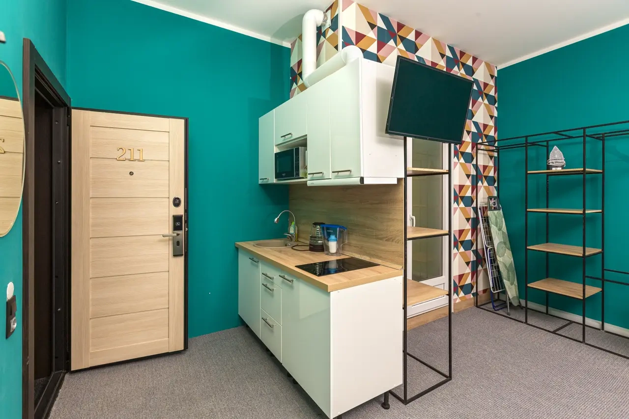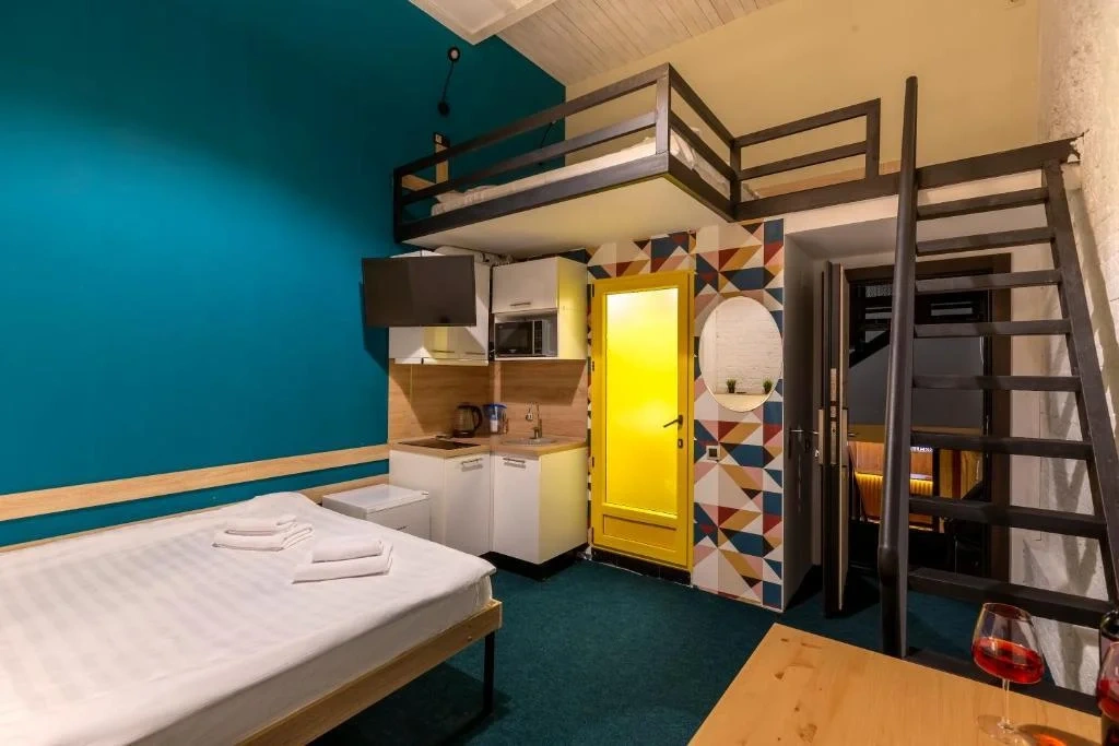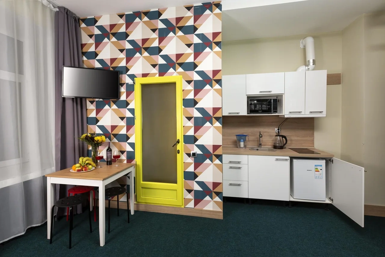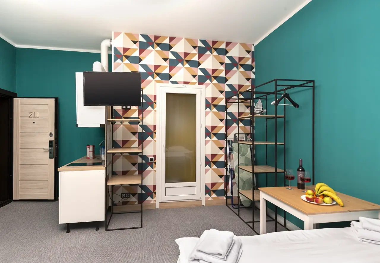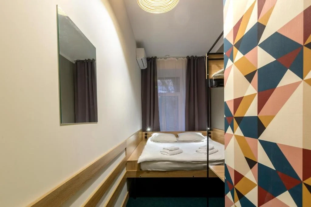 Двухместные номера данной категории находятся на 3 этаже и отличаются небольшой площадью и наличием мансардного окна. Приятная обстановка, в том числе ортопедический матрас Askona, заправленный белоснежным постельным бельем из страйп-сатина, свидетельствуют о внимании к деталям. В номере- WIFI и телевизор, подключенный к каналам через интернет. Ванная комната отделана яркой глянцевой плиткой. Пл0щадь каждого из 15 номеров данной категории составляет от 9 до 10 кв. м. Удобства в номере. Ванная комната, Кондиционер, Телевизор, Вешалка для одежды, Бесплатные гигиенические принадлежности, Тапочки, Полотенца. Удобства в отеле. Данные удобства находятся на 1 этаже и являются бесплатными для гостей отеля: Стиральная машина, Мини-кухня с холодильником, Микроволновая печь, Электрический чайник, утюг и гладильная доска. Кроме того, на ресепшене отеля вы можете приобрести кофе.