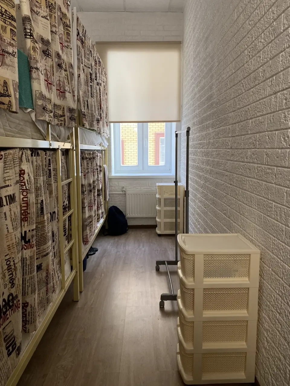 Общий 6-ти местный женский номер. В комнате 3-и двухъярусные кровати, у каждого спального места имеется двойная розетка, индивидуальное ночное освещение, полочка. Все спальные места имеют плотные шторки, для отгораживания от общего пространства комнаты.В наличии прикроватные тумбочки, холодильник, вешалки для одежды, зеркало, корзина для мусора.