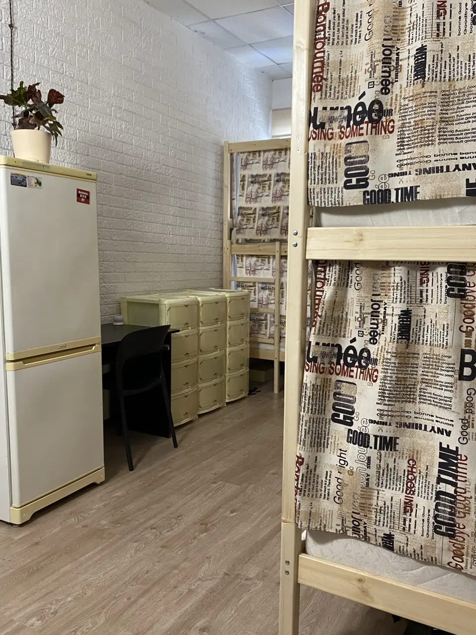 Общий 4-х местный мужской номер. В комнате 2-е двухъярусные кровати, у каждого спального места имеется двойная розетка, индивидуальное ночное освещение, полочка. Все спальные места имеют плотные шторки, для отгораживания от общего пространства комнаты.В наличии прикроватные тумбочки, холодильник, вешалки для одежды, зеркало, корзина для мусора.