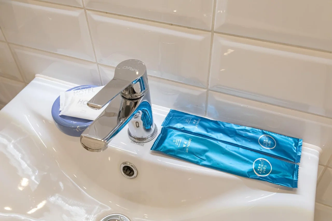 — одноразовые гигиенические наборы: мыло, шампунь, гель для душа, зубная щетка/паста;