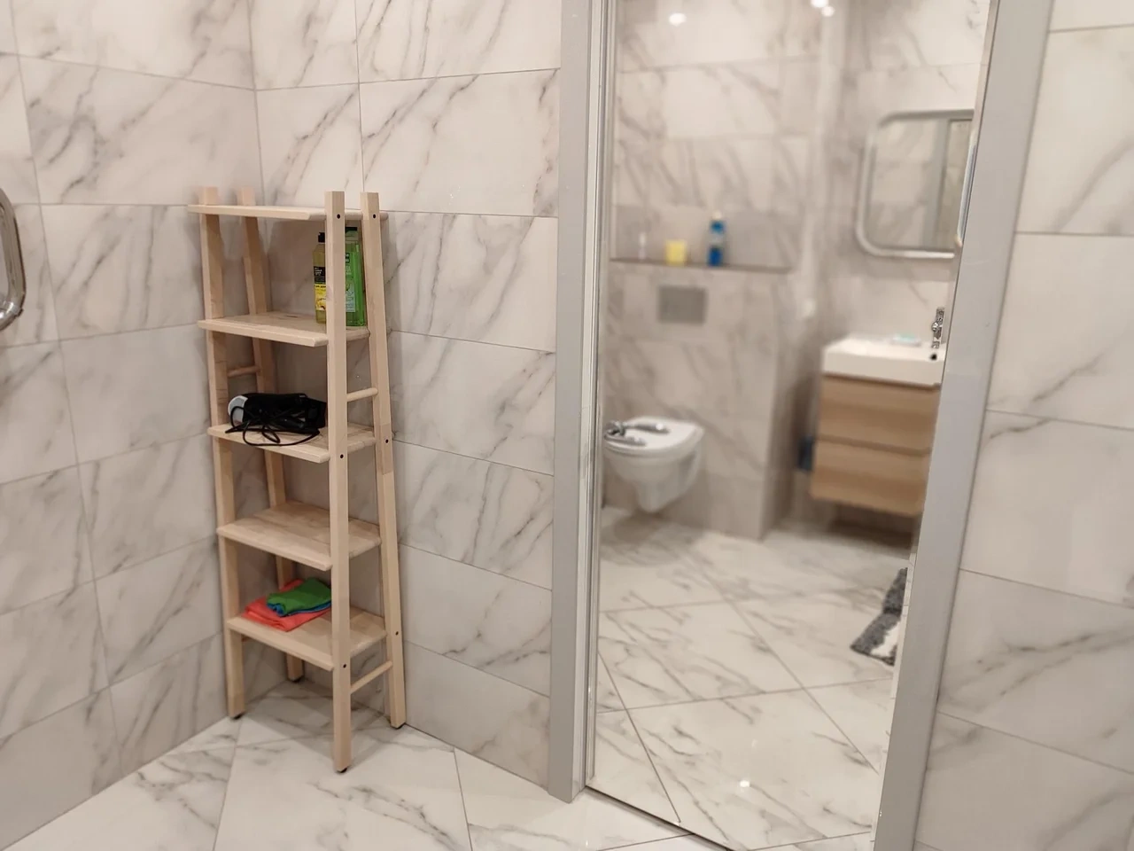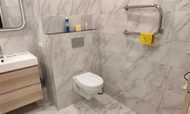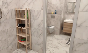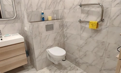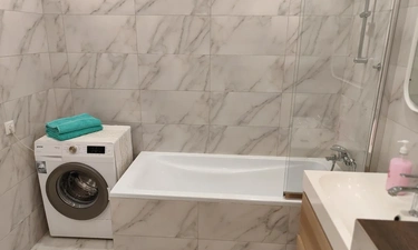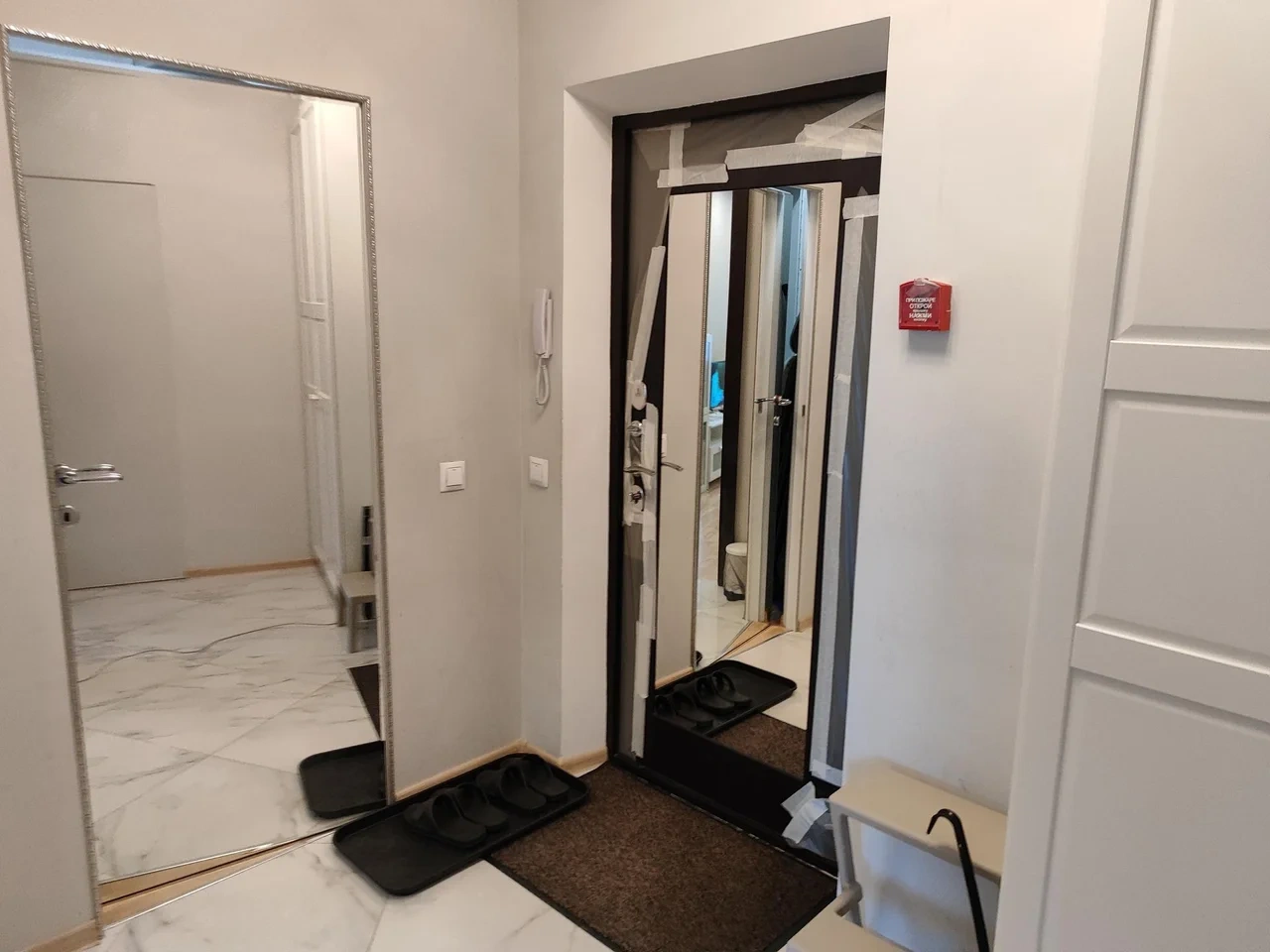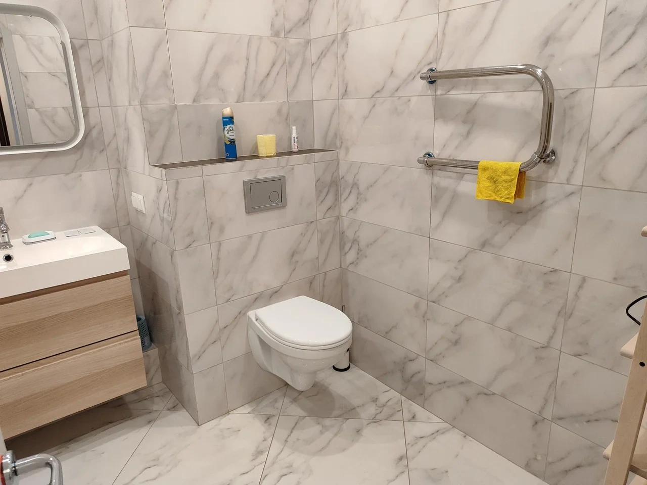 Ванна, прихожая и кухня исполнена в мраморной плитке. Шкаф для верхней одежды, зеркало во весь рост имеется в прихожей. Тапочки можно использовать для курящих гостей. На общем балконе можно курить.