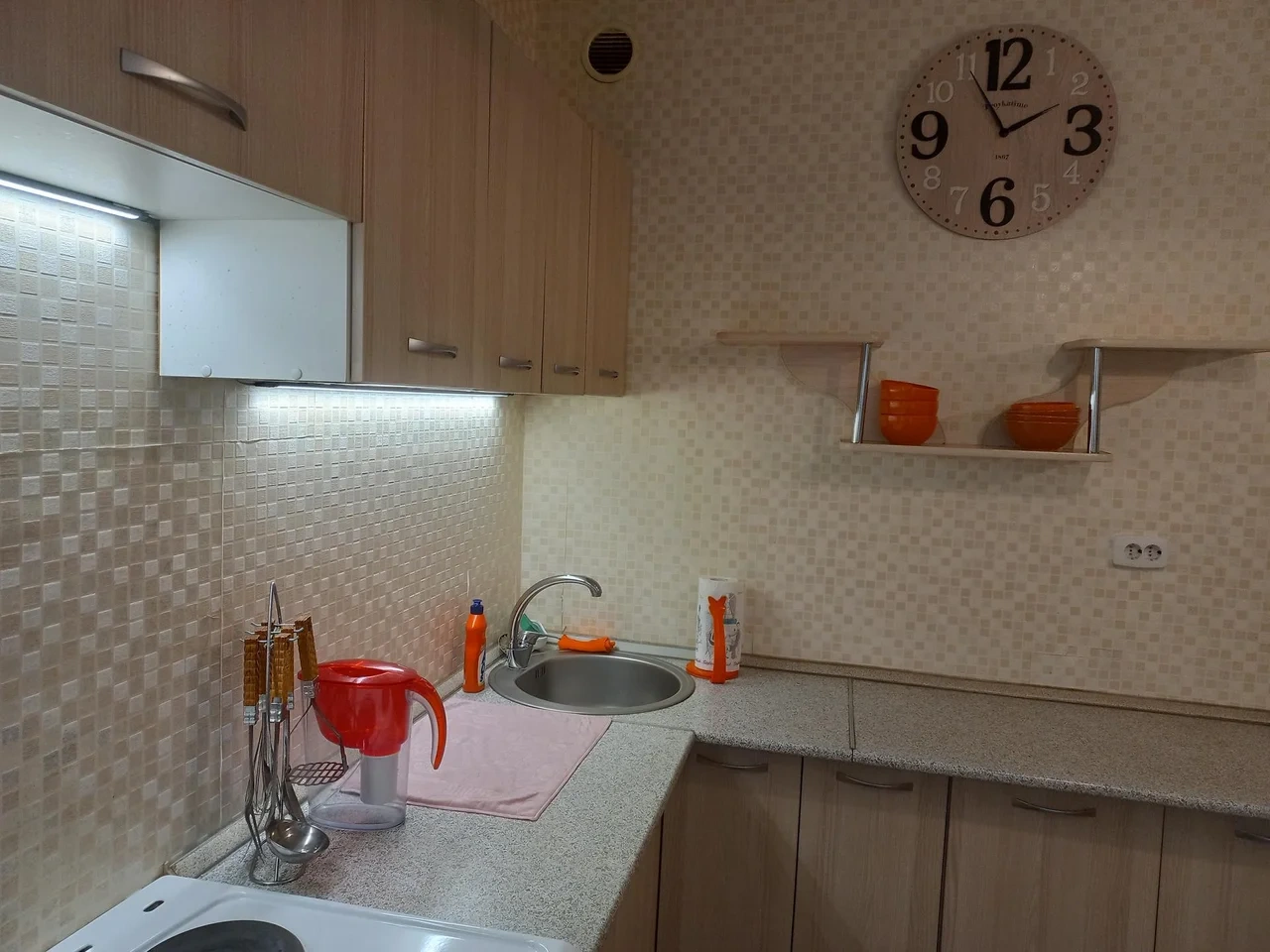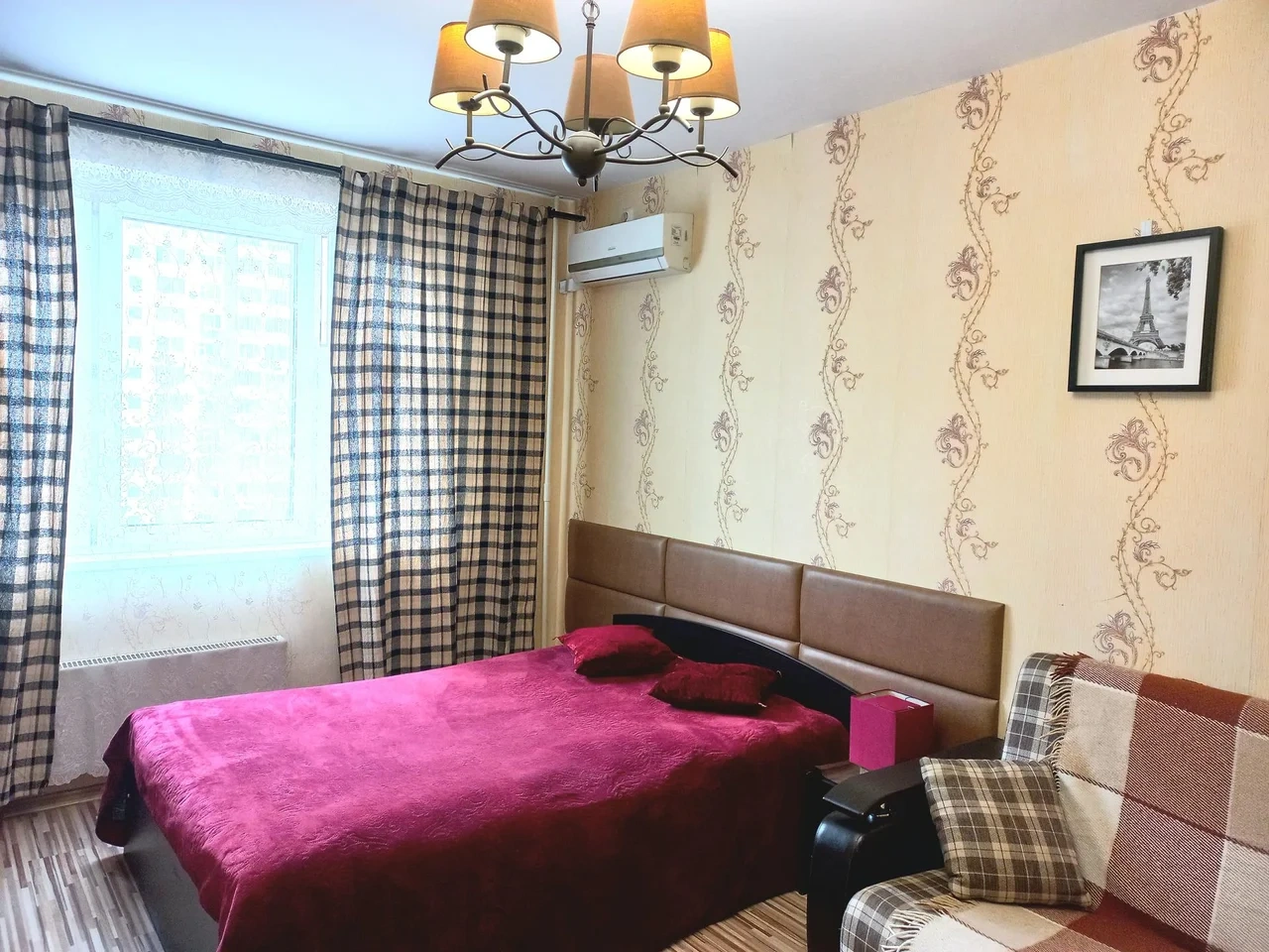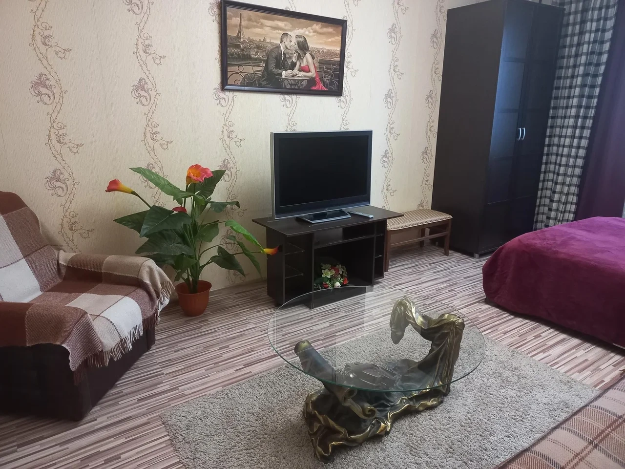 Удобная двуспальная кровать, диван, оборудованная кухня (плита, микроволновка, холодильник, посуда), стиральная машинка, застекленная просторная лоджия. Бесплатный wi-fi. Вокруг развитая инфраструктура - торговый центр, продовольственные магазины на любой вкус.