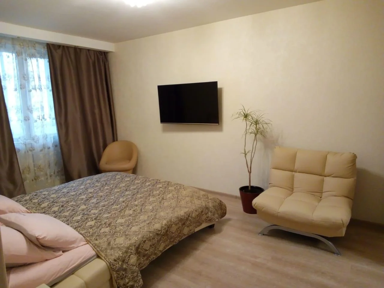 Удобная двуспальная кровать, оборудованная кухня (плита, микроволновка, холодильник, посуда), стиральная машинка, застекленная лоджия. Бесплатный wi-fi. Вокруг развитая инфраструктура - торговый центр, продовольственные магазины на любой вкус.