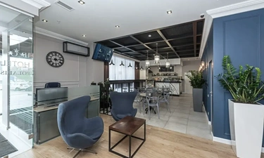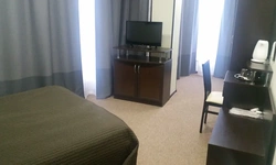 Трудно было найти отель, нет питания, то есть оно как бы есть , но где/то в другом корпусе, а вечером когда приехали уже все везде было закрыто и даже выйти из гостиницы было проблематично, здание с кодовыми замками везде, стоянка. Лифт, коридоры и тд. В здании не только гостиница, но и другие офисы и учреждения. А так в номере все ок!
