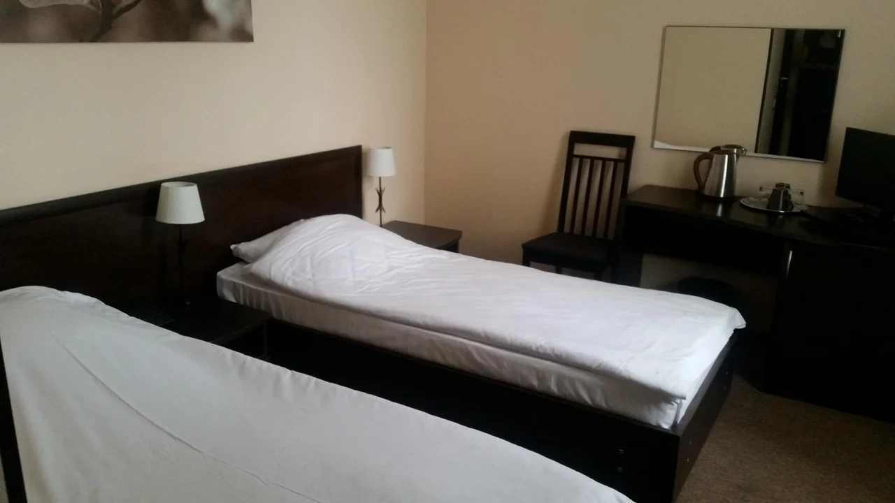 Сначала попросили подождать, в целом мы были согласны , так как номер должны были убирать . Через 5 минут сказали, что номер готов . В номере старая мебель , продавленные матрасы , желтые застиранные простыни, оторванная штора ,пыль и пол в блестках ???? видимо остались после какой-то пати ))) будьте готовы к тому , что нет холодильника, фена и питьевой воды (на этаже стоит кулер, в постоянно закрытом 13 номере микроволновка)