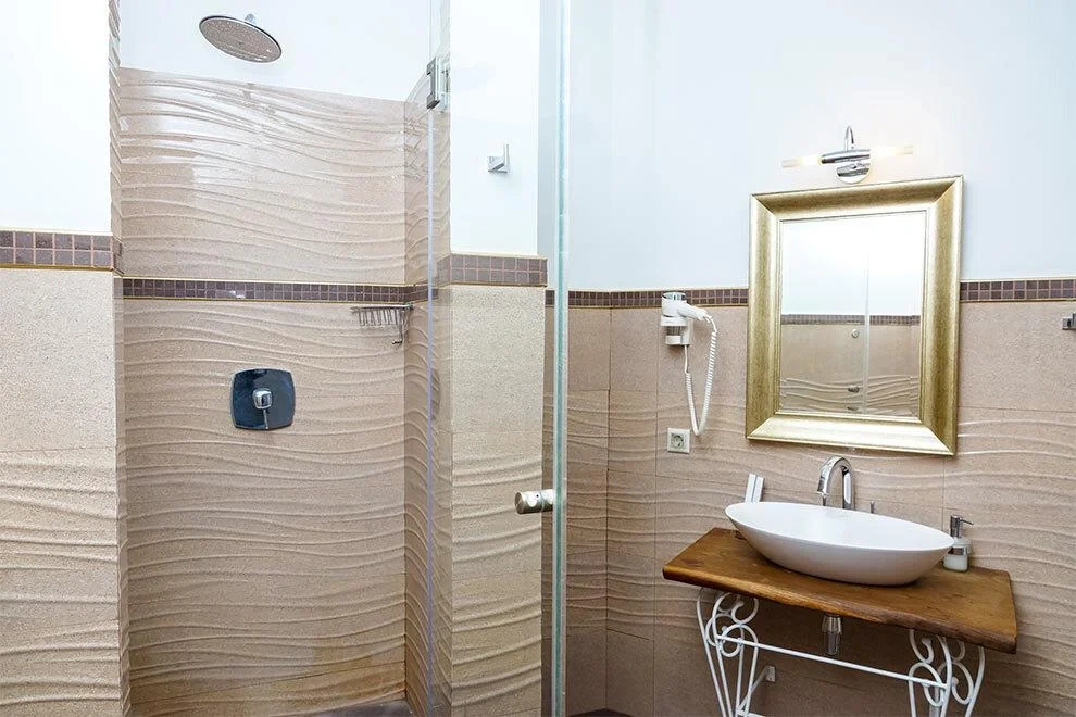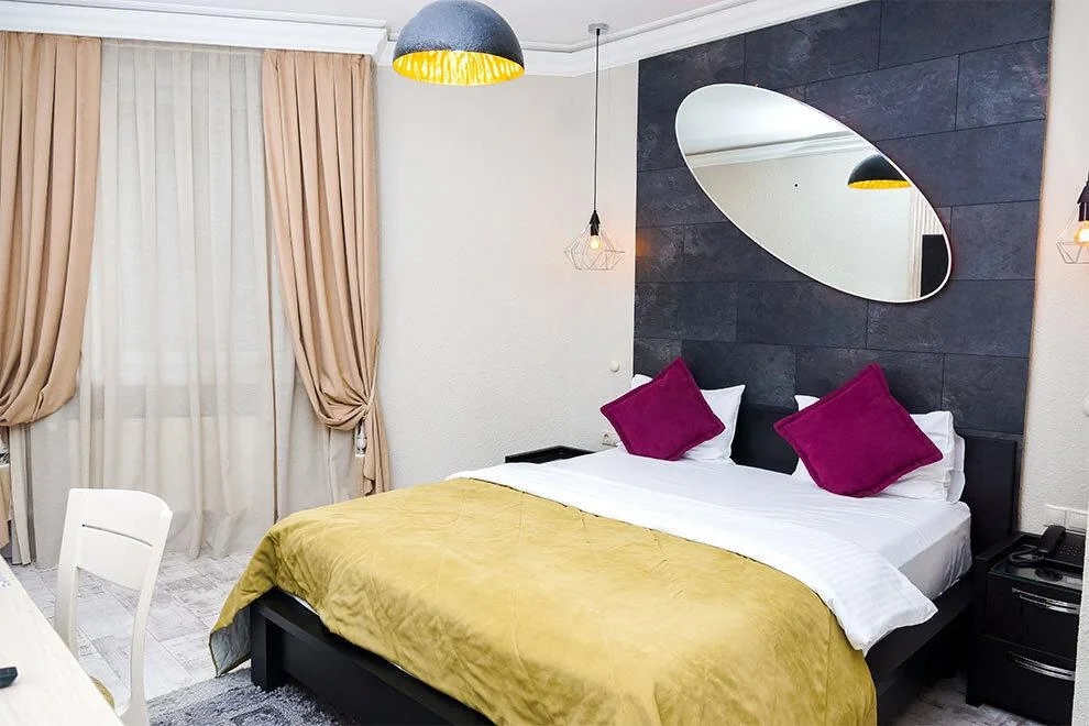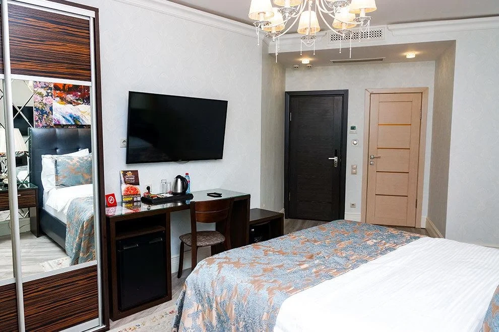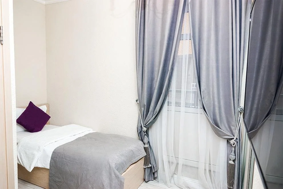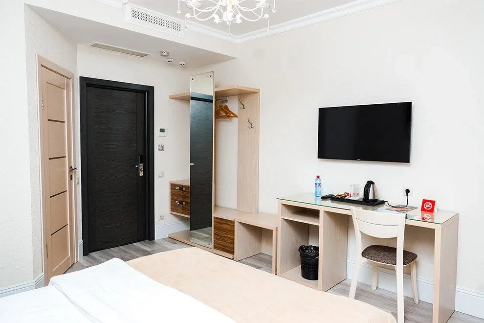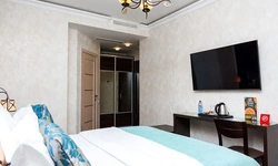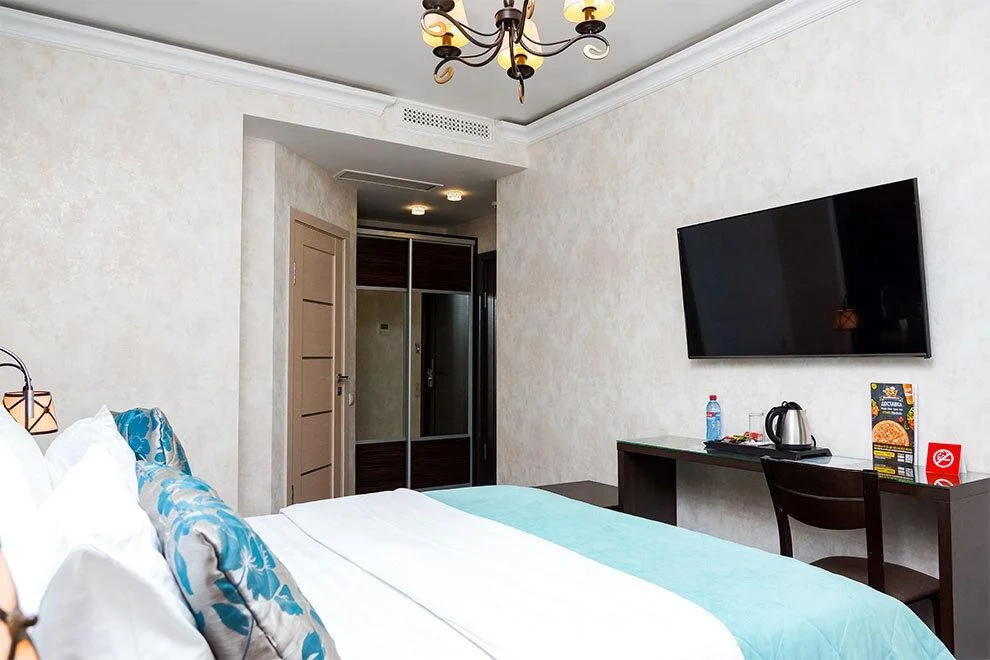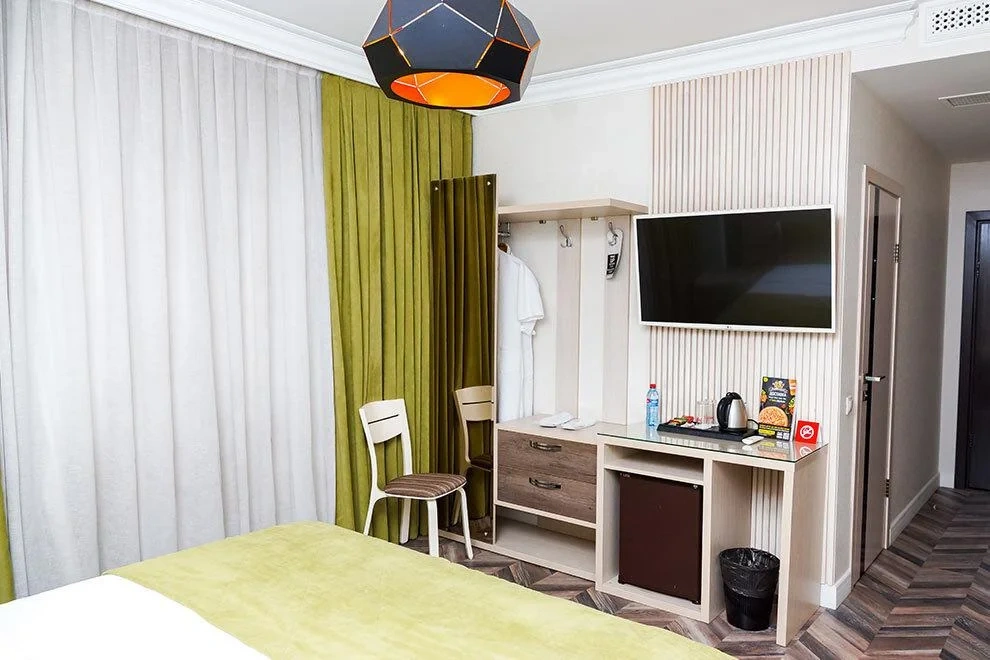 Расположение крайне не удобное, такси подъезжает со стороны дороги. Нету холодильника, для заявленных 4-х звезд просто полное несоответсвенние. Очень грязная ванная комната, при включение счета в ванной комнате очень сильный шум, не понятно почему так. Очень дорогой номер за 2 ночи, из-за неприязни пришлось выехать раньше. В отель попасть крайне сложно, так как отель 4-х звезд находится в жилом доме, спасибо что есть жильцы которые могут впустить. Номер крайне маленький. Сдачи у не было, пришлось оставить 600 р. В итоге 10т. Коту под хвост. Персонал очень не дружелюбный, при заезде ни то что, ни рады видеть, а на лице лучше бы вы сюда не заезжали. В общем не рекомендую отель от слова совсем. Все битое, и грязное.
