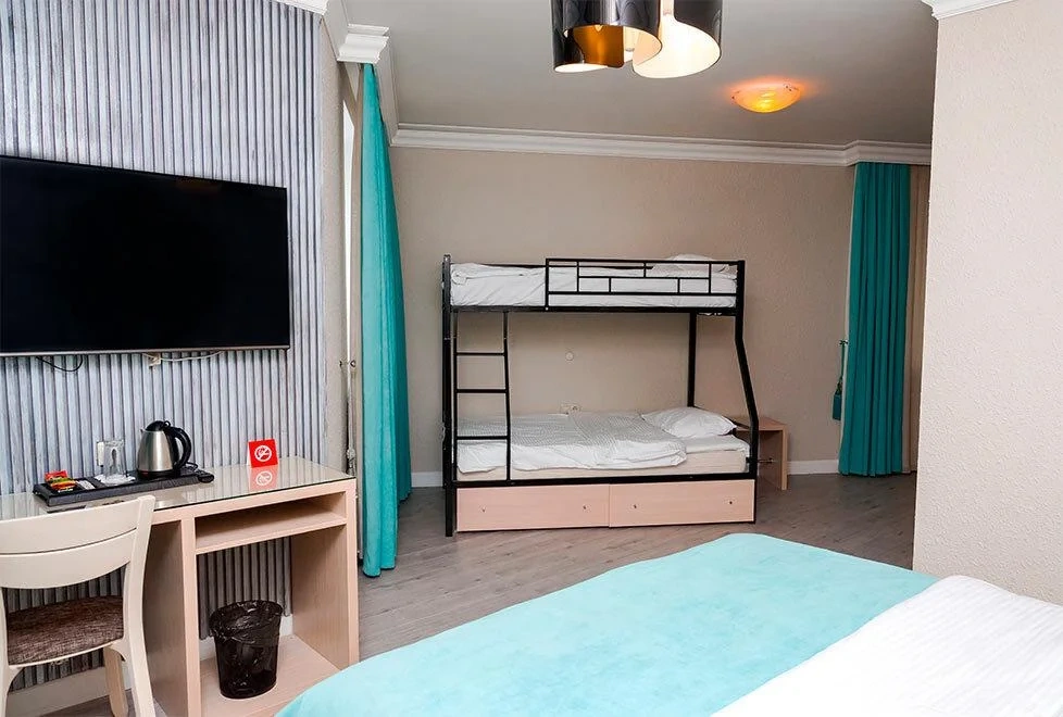 Есть чайник, но нет кулера, чтобы набрать чистой воды. И к сожалению запущен подход к уборке. Мусор на полу, видно, что перед заселением не прибирались. В углу душевой волосы и самое мерзкое – это прокуренная ванная. Даже от полотенец шаманило куревом. В общем сам отель неплохой, но из за отношения к чистоте абсолютно не соответствует своей цене – было неприятно находиться в нем. Больше точно не поеду.