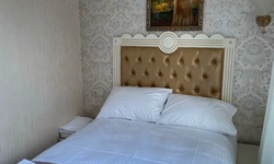 4. Мягкий убитый матрас на двуспальной кровати, бельё меньшего размера чем нужно.