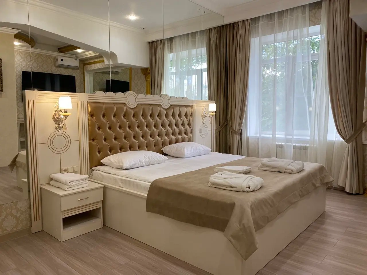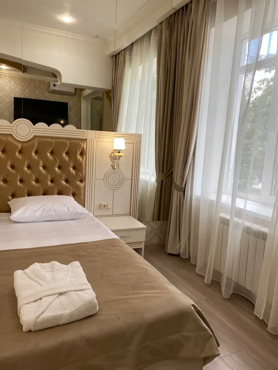 При бронировании на сайте был указан номер - стандарт, по факту оказался номер - эконом, без кондиционера. Спорить не стала, согласилась, тк на улице была достаточно комфортная температура, но в жару был бы не очень приятный "сюрприз".
