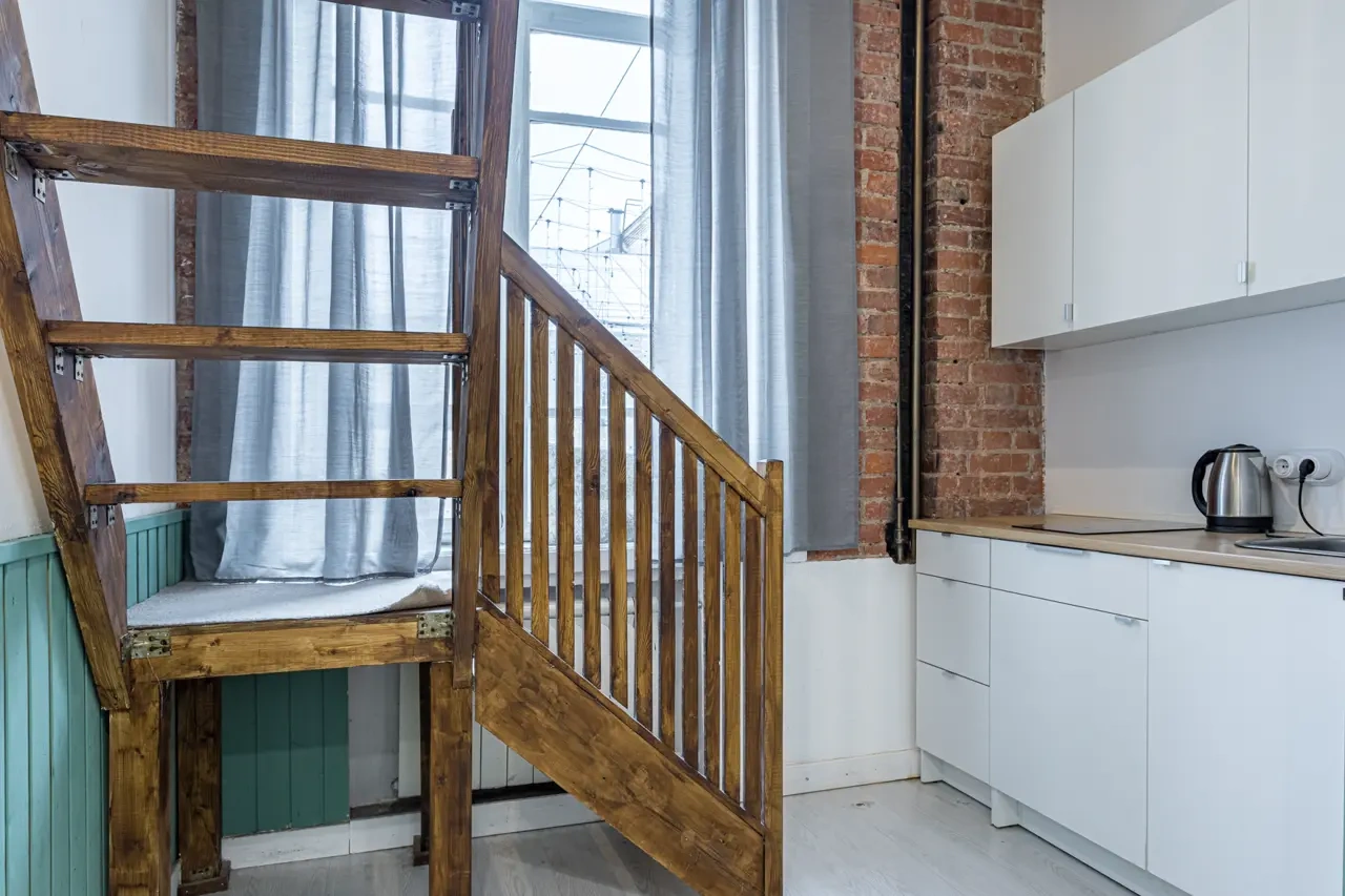 - продавленный пол и диван, скрипучая лестница в спальню с треснувшими ступенями;