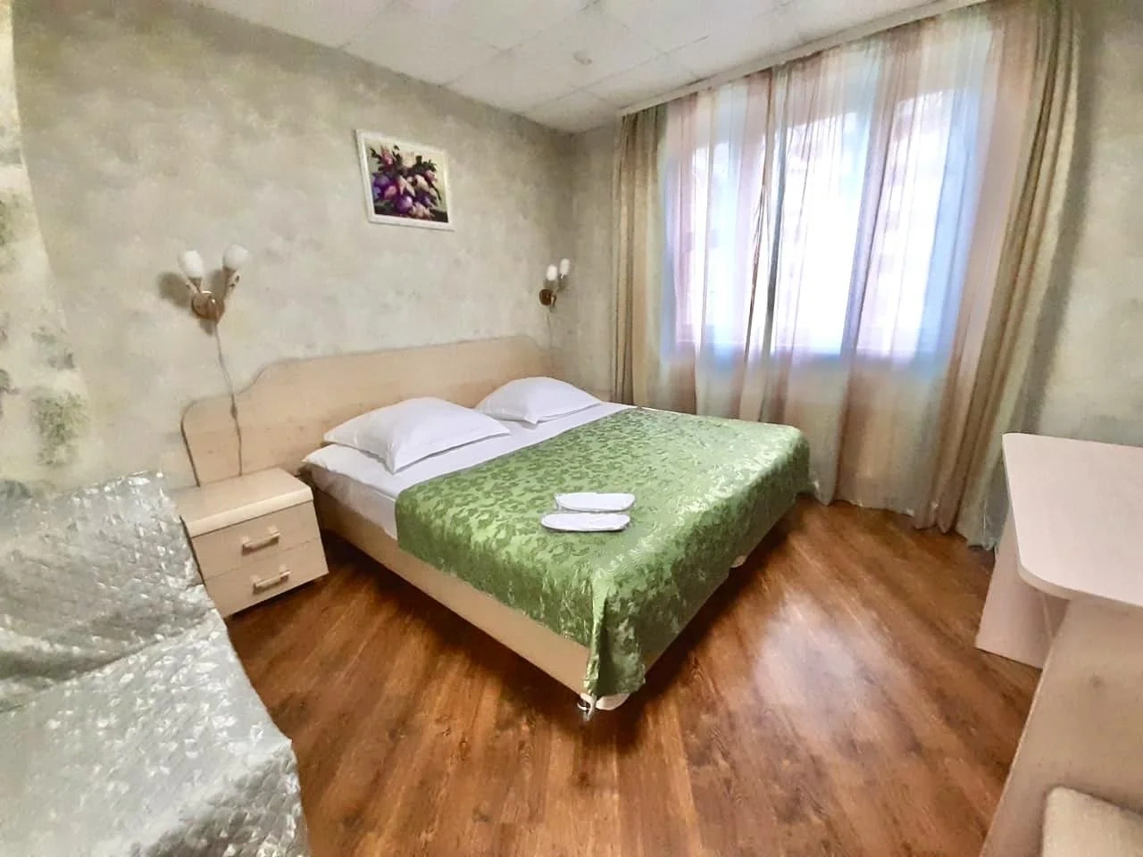 1. Вместо указанной двуспальной кровати были тупо по идиотски поставлены две односпальные, которые постоянно разьезжались в боки. Удобство на 0. Весь номер выглядит не очень приятно. Пол весь в волосах и трещинах. Были прожженные шторы(хотя писалось, что номер для некурящих). В туалете все держится на соплях. Окно всю ночь поддувало. Приехали бы еще раз в это место? Никогда