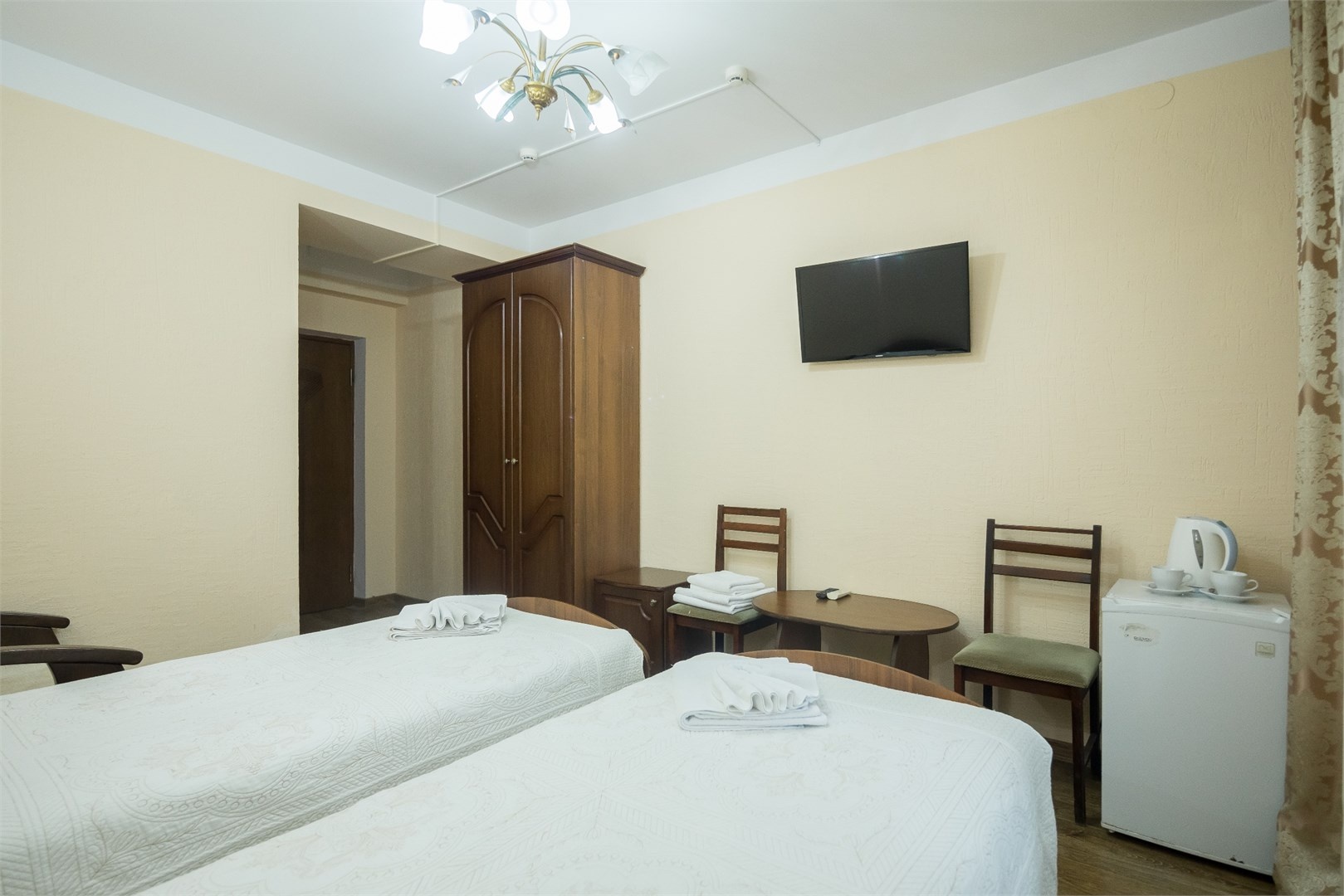 Все номера оборудованы удобными кроватями, сплит-системами, современными ТВ с плоским экраном, холодильниками, вместительными шкафами для одежды. В отдельных номерах есть мягкая мебель, сейфы для ценных вещей и балконы. В каждом номере индивидуальная ванная комната с набором полотенец, гигиенических принадлежностей, санузлом, раковиной и феном.