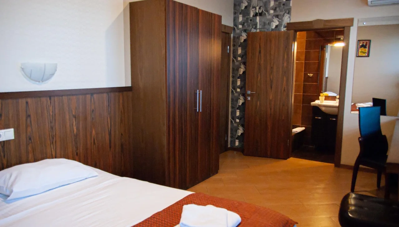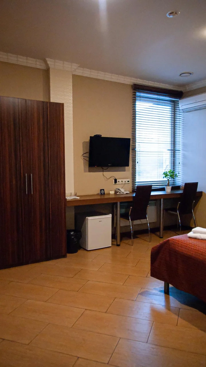 Отель небольшой, но уютний, все чистенько и со вкусом, персонал приветлывый, есть кондиционер и холодильник, вода для питья и WIFI, расположение удобное, вблизи есть много магазинов, доезд маршруткой, метро, все доступно и просто, проживание в этом отеле снимает напряжение большого города, рекомендую!