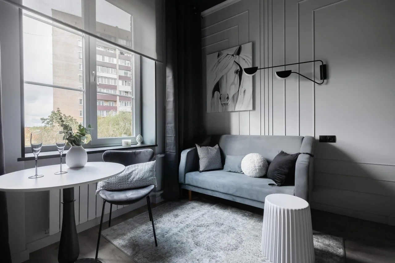 Предлагаем вашему вниманию уютные апартаменты в серо-черных оттенках, создающих атмосферу роскоши и умиротворения. Наше жилье идеально подходит для тех, кто ценит комфорт и элегантный дизайн.