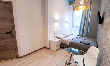 Лофт Расположен на Кутузовском проспекте: 8 минут пешком до станции метро "Парк Победы", в 5 минутах на автомобиле до Москва-Сити. Поблизости ТРЦ "Афимолл", "Филион", "Времена Года". Большой выбор парков для прогулок: Парк Победы, Филевский парк, Природно-исторический парк Москворецкий. Абсолютно новые студии с дизайнерским ремонтом в стиле Лофт в новом доме Бизнес класса. До м. Багратионовская или Парк Победы пешком 8 минут. В комнате двуспальная кровать размера Queen size, полностью оборудованная кухня с холодильником, СВЧ, индукционной варочной панелью и всей необходимой посудой. Отдельный санузел. Стиральная/сушильная машина находится в общем коридоре на три студии. К услугам гостей бесплатный Wi-Fi. Для Вашей безопасности заселение и выселение самостоятельное. Ни с кем из персонала Вы не контактируете.