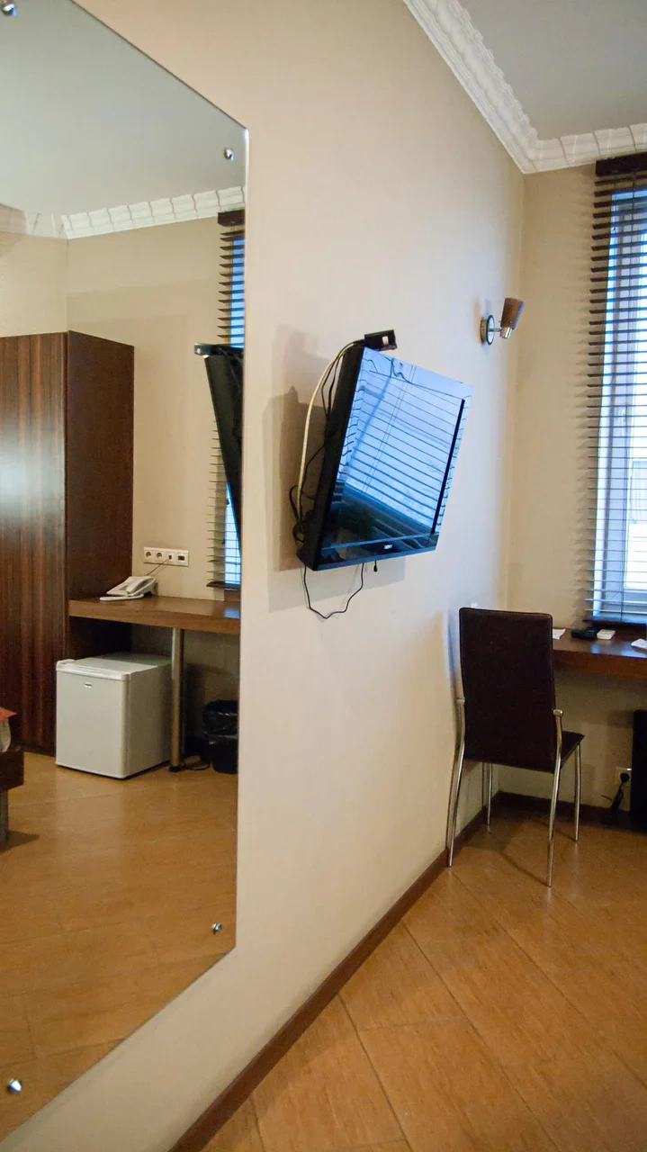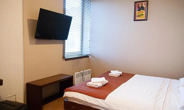 Уютный номер класса Люкс с двухспальной кроватью и собственной ванной комнатой ВАННАЯ КОМНАТА С ДУШЕМ ТУАЛЕТ ФЕН БЕСПЛАТНЫЕ ТУАЛЕТНЫЕ ПРИНАДЛЕЖНОСТИ ТАПОЧКИ УСЛУГА "ЗВОНОК-БУДИЛЬНИК" БЕСПЛАТНЫЙ WI-FI СЕЙФ КОНДИЦИОНЕР ХОЛОДИЛЬНИК РАБОЧИЙ СТОЛ ТЕЛЕФОН ОТОПЛЕНИЕ ШКАФ/ГАРДЕРОБ ТЕЛЕВИЗОР С ПЛОСКИМ ЭКРАНОМ СПУТНИКОВЫЕ КАНАЛЫ