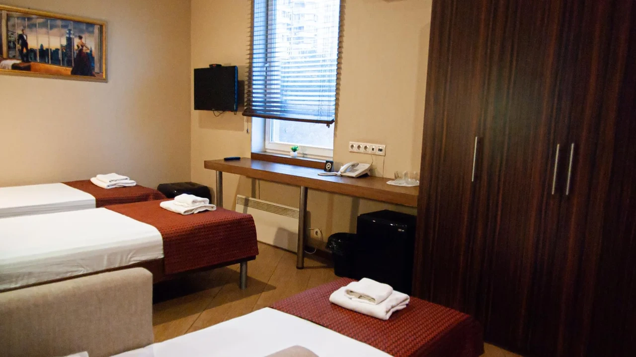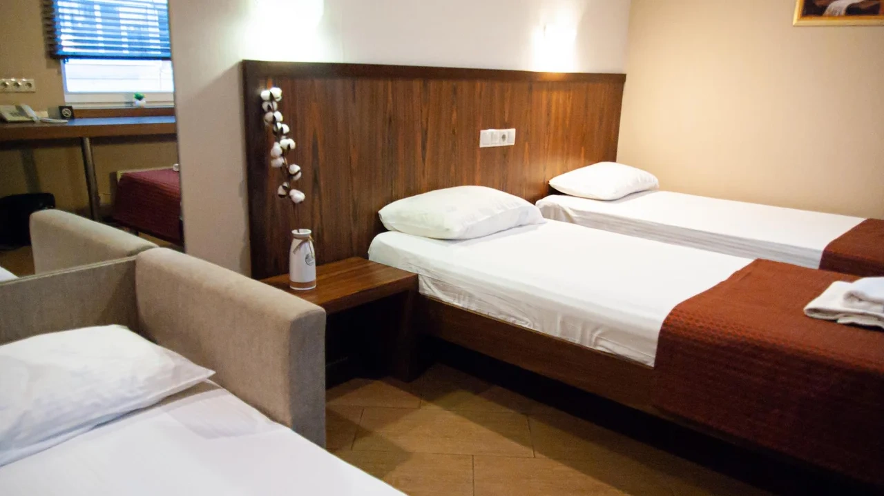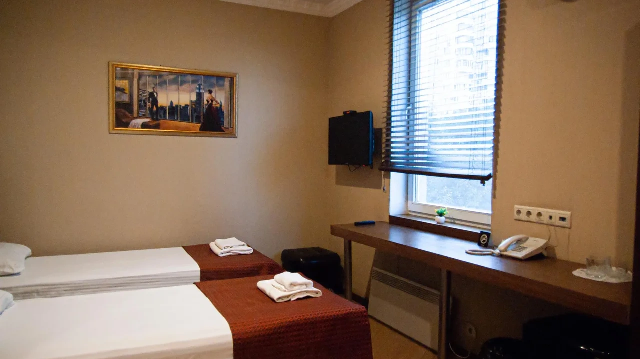 Двухместные номера площадью 16 м² с двумя раздельными кроватями (могут быть сдвинуты по запросу) В номере есть сейф, мини-холодильник, TV, Wi-Fi, кондиционер, рабочий стол, телефон