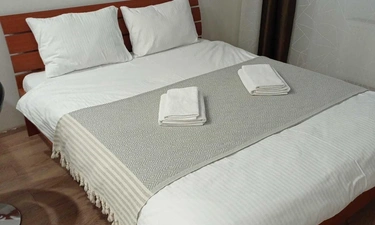 Для комфортного проживания гостей имеется: двухместная кровать с ортопедическим матрасом, телевизор, стиральная машина, СВЧ-печь, плита, сушилка для вещей, утюг и гладильная доска, фен, Wi-Fi. Чистое хлопковое постельное белье (Евро Сатин плотн. - 140) и наборы белых полотенец высокой плотности.