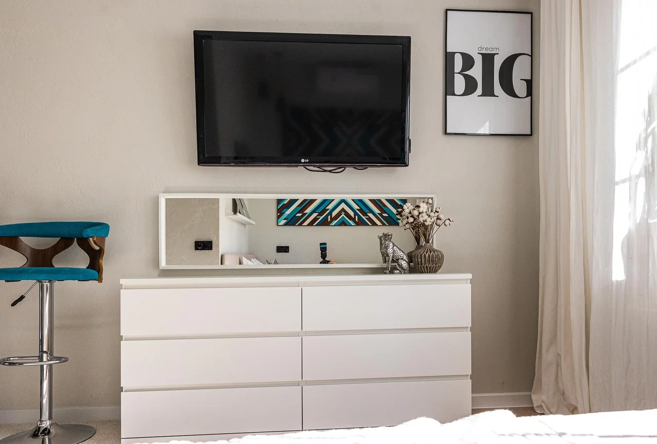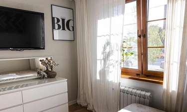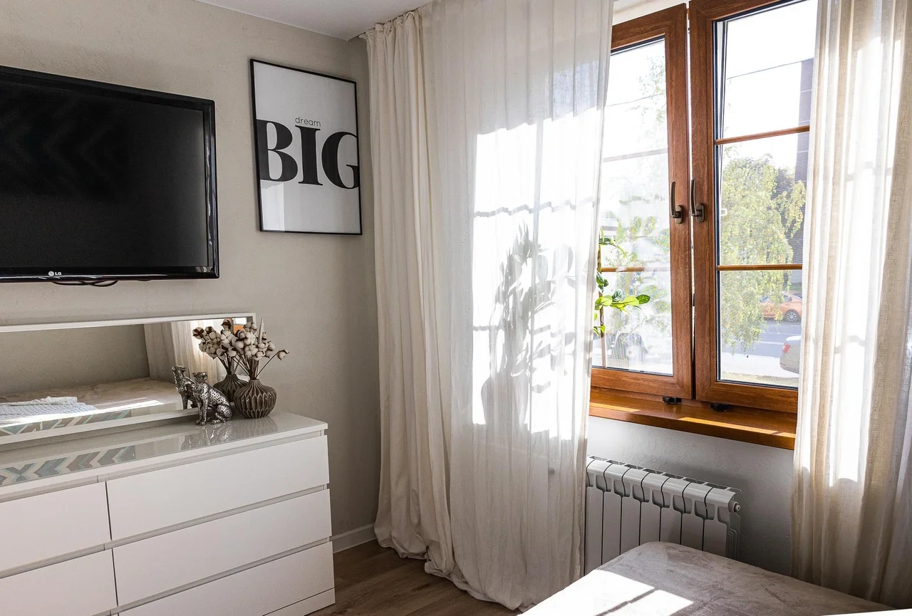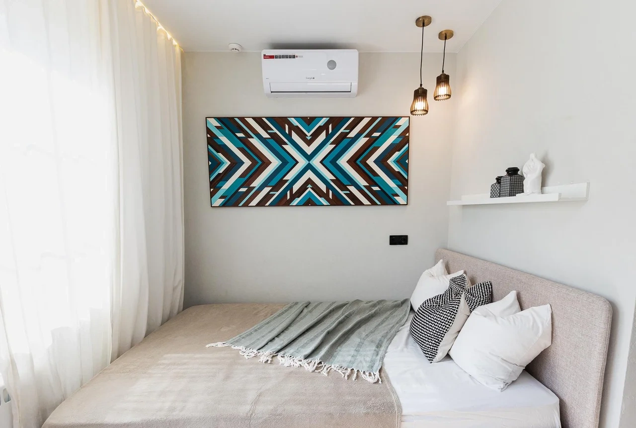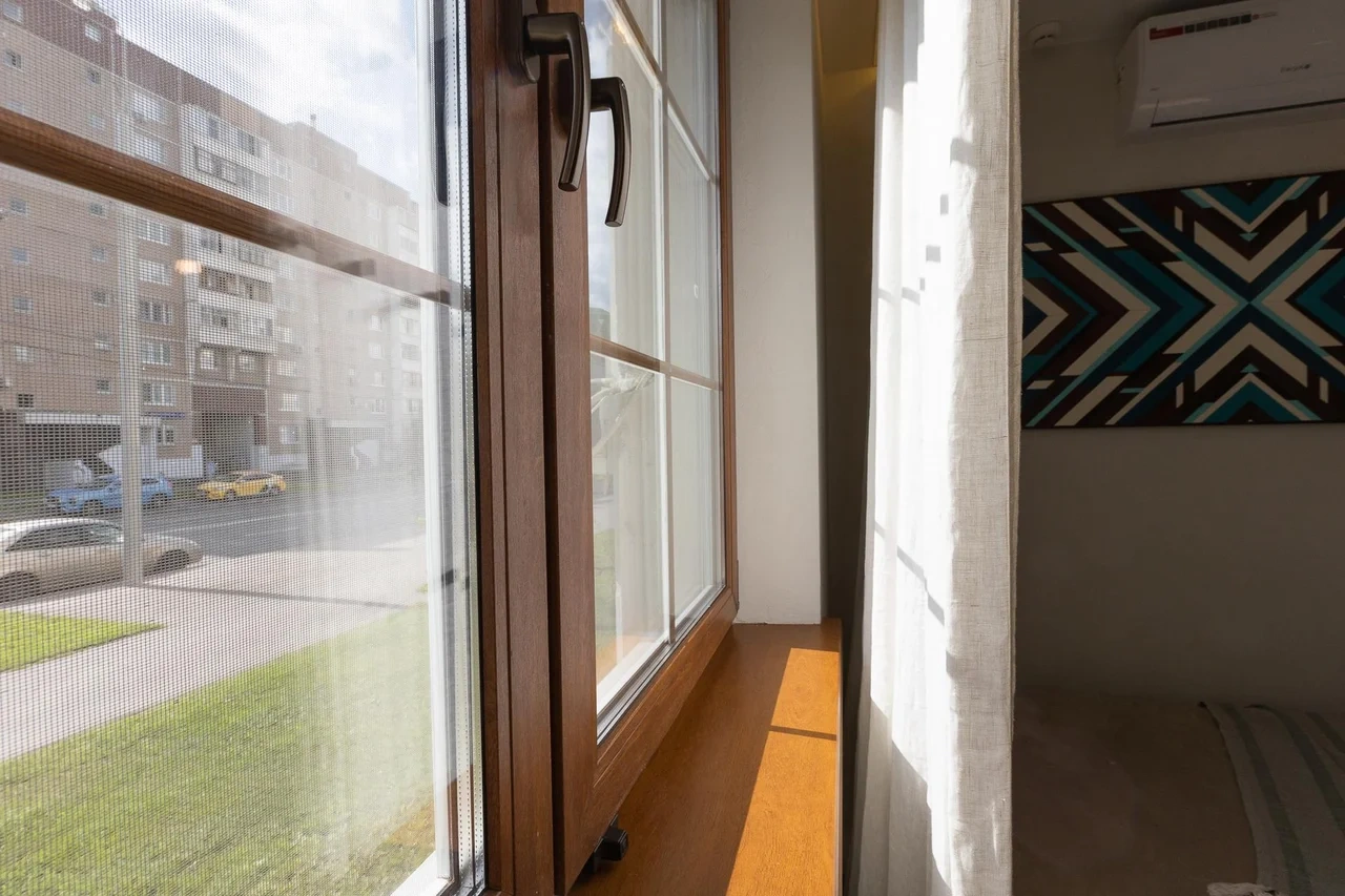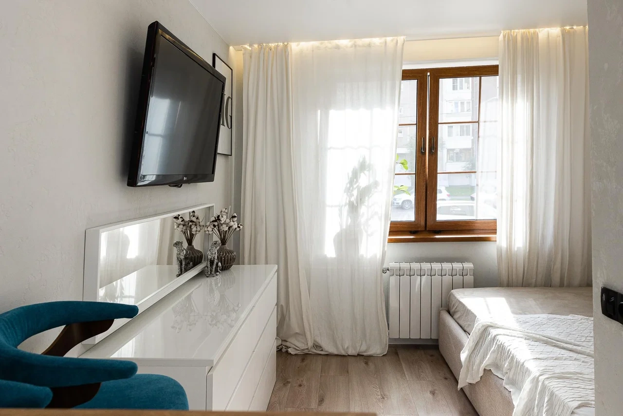 * Светлая солнечная спальня с ДВУСПАЛЬНОЙ КРОВАТЬЮ, телевизором, кондиционером