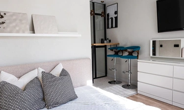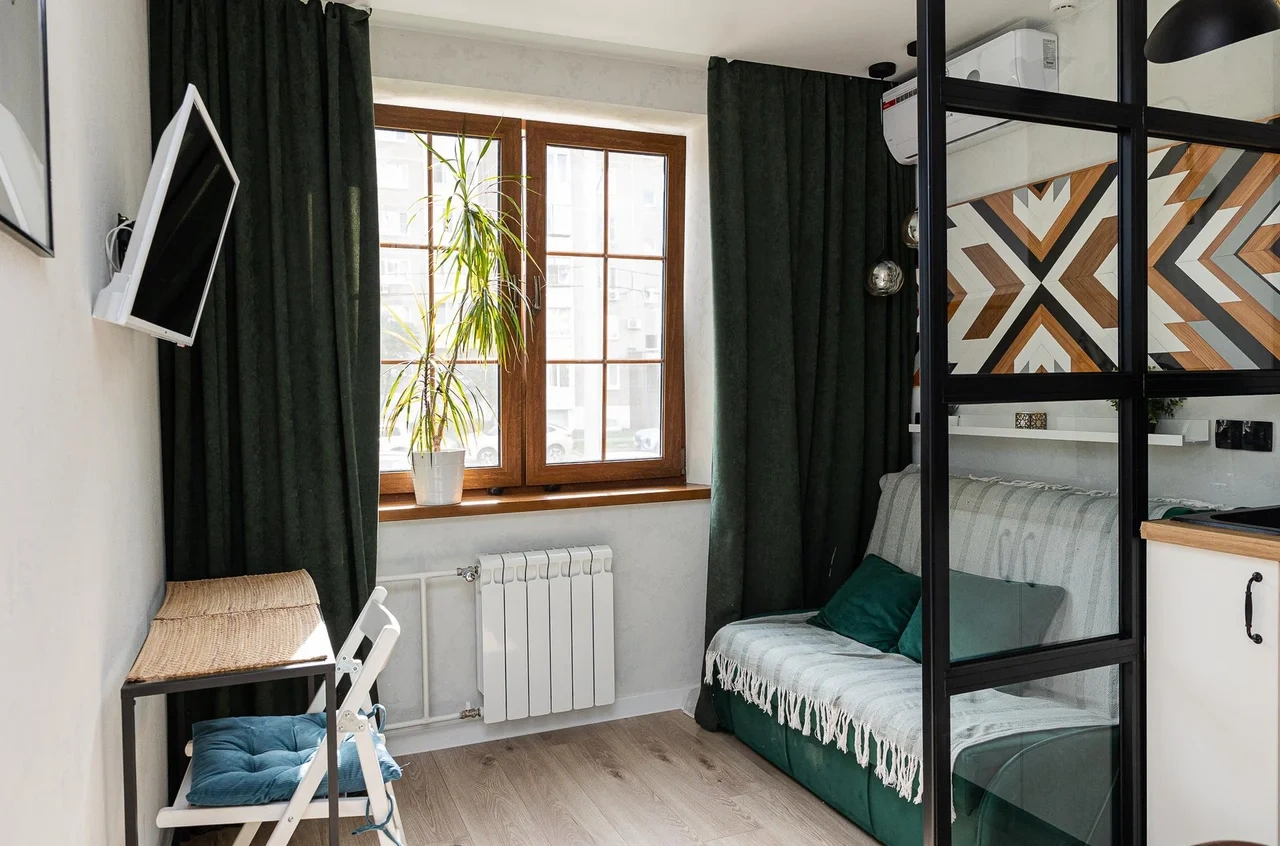 * Гостиная с раскладным диваном, телевизором, кондиционером