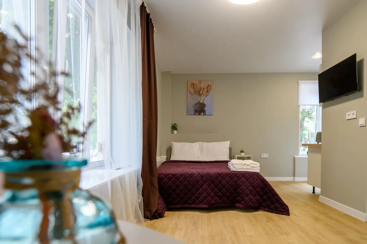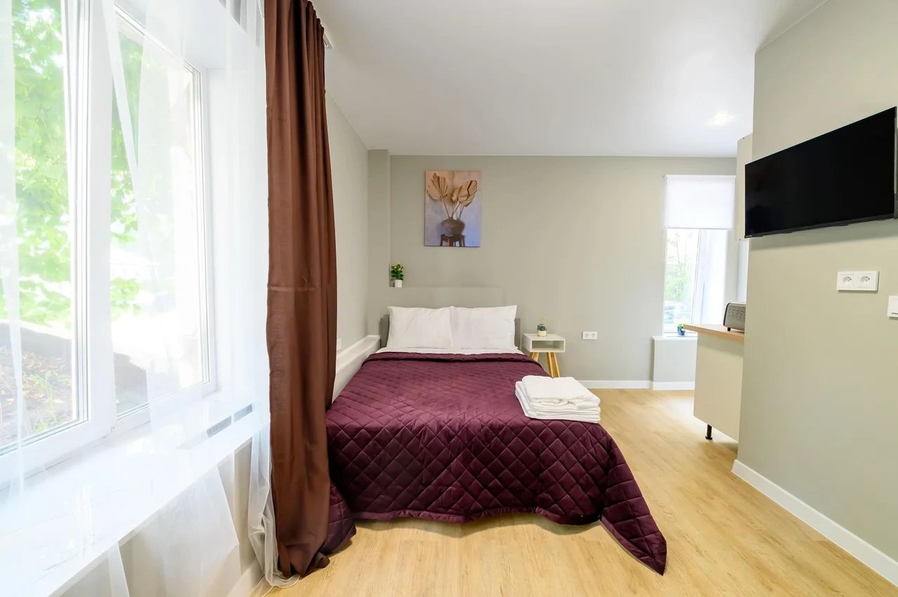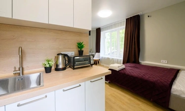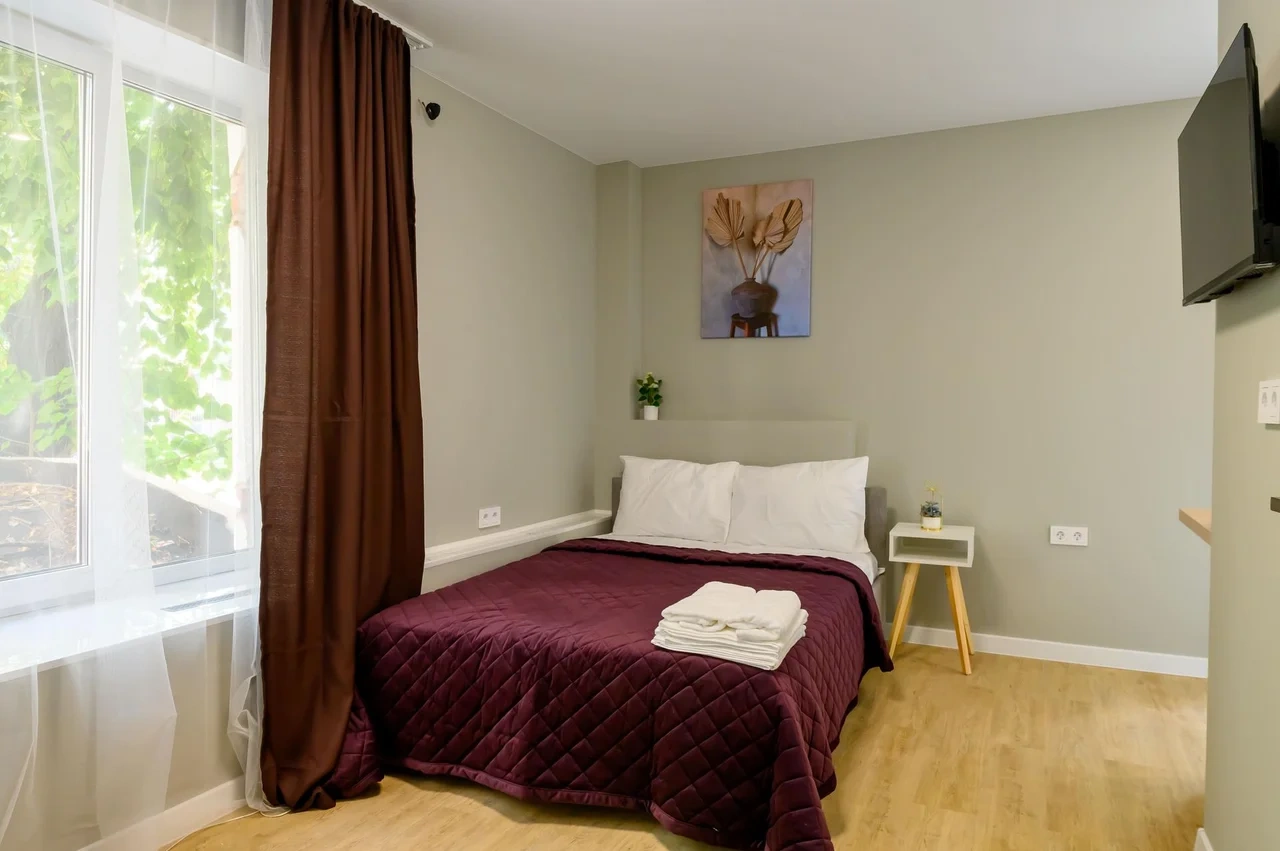 - Мы работаем по общепринятым стандартам - заезд с 14.00, выезд до 12.00.