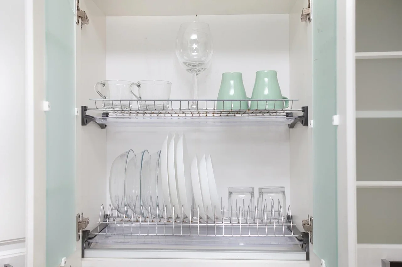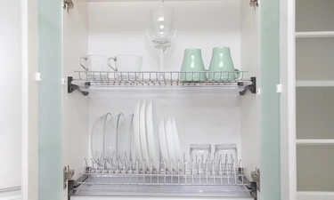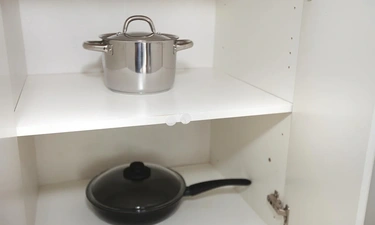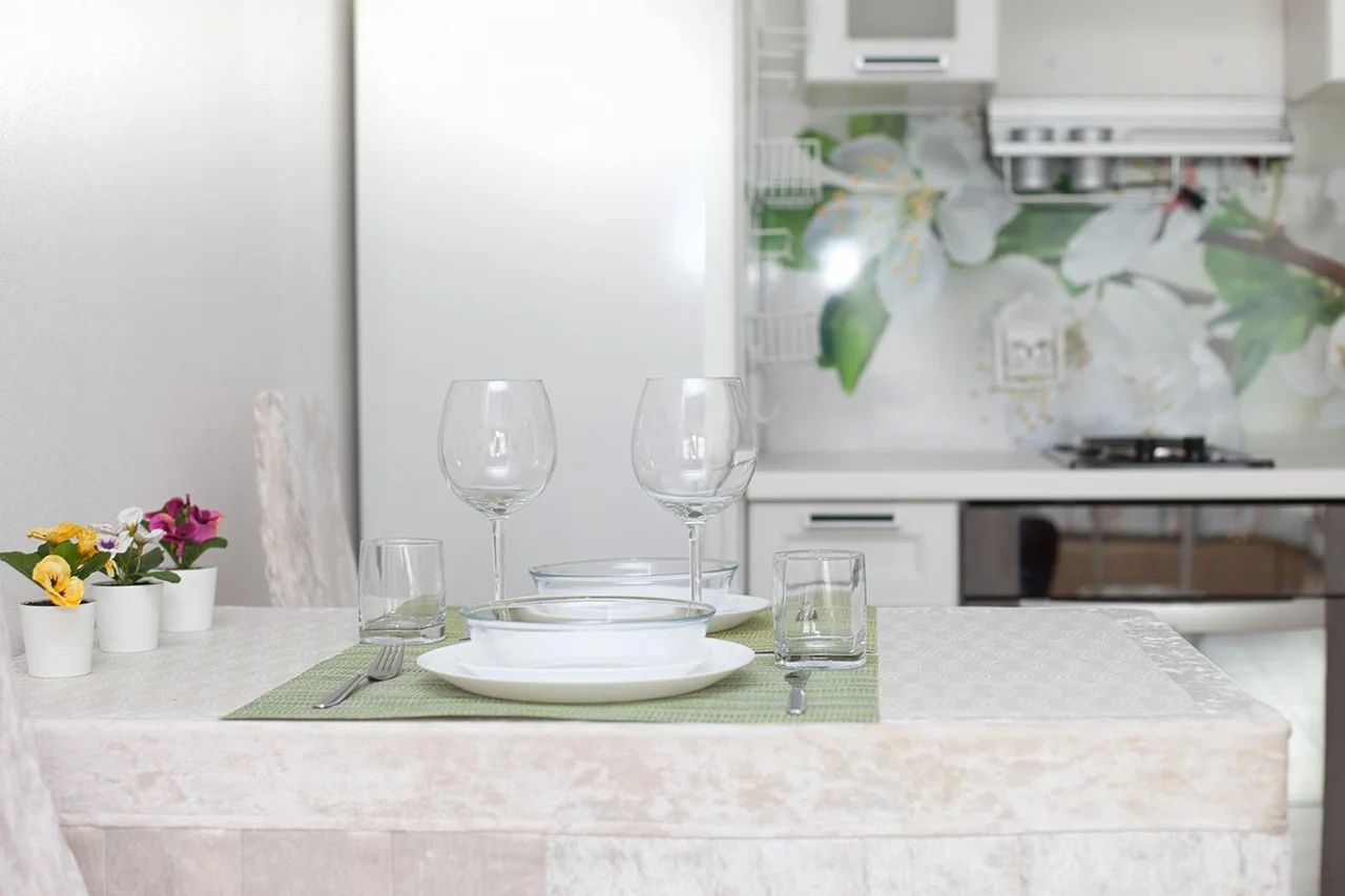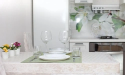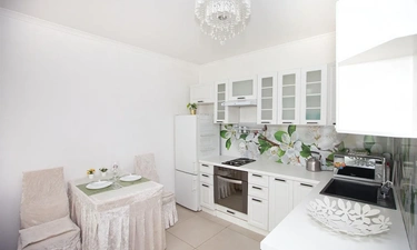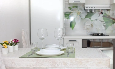 Кухня оснащена всем необходимым для приготовления еды и сервировки стола.