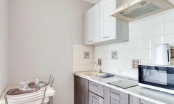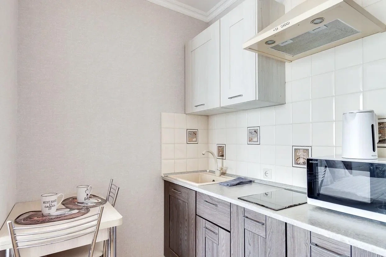 -Микроволновая печь, холодильник, электрочайник, кухонная плита,