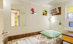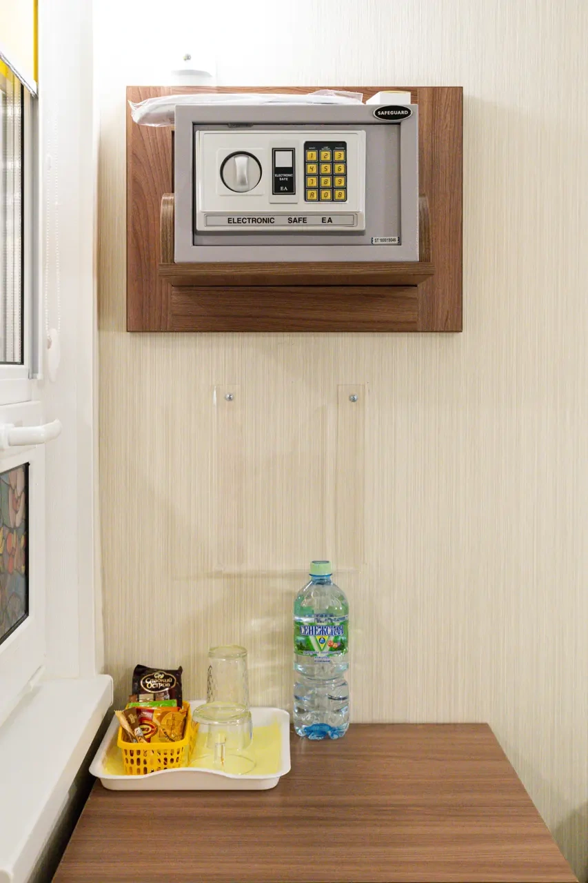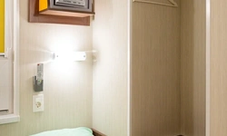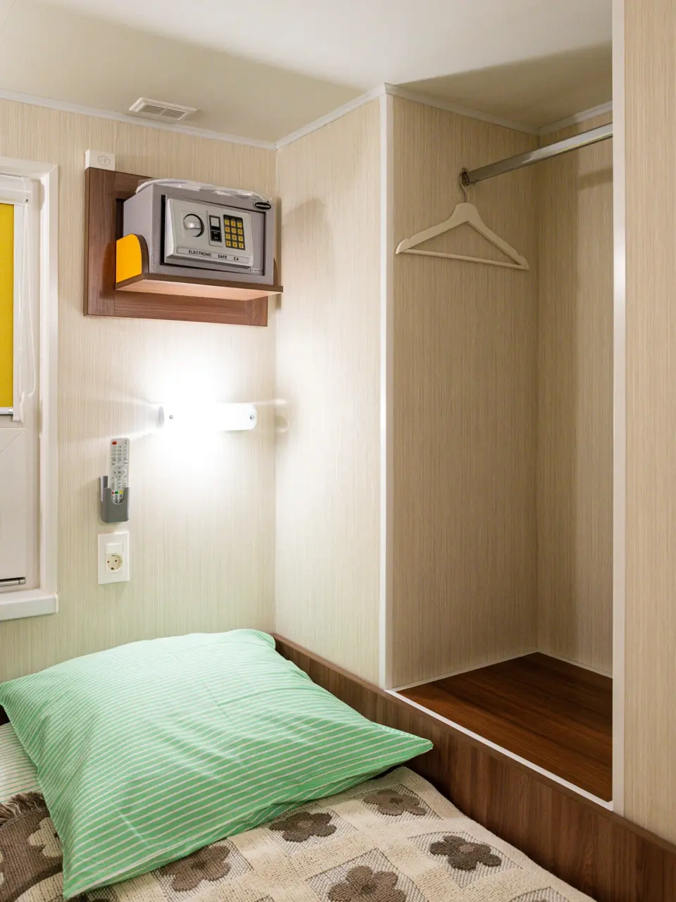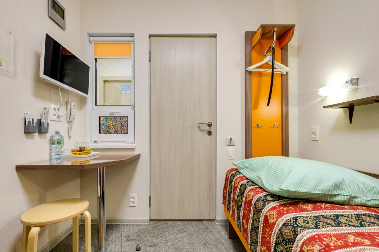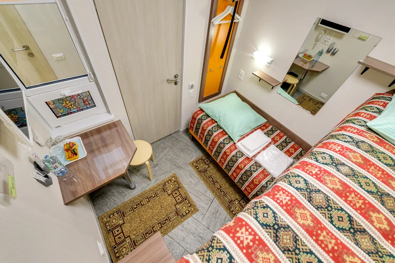 Одноместный однокомнатный номер-капсула, оформленный в современном стиле. В номере: 1 кровать 800*2000, телевизор, холодильник, сейф, телефон, приветственный набор (чай, кофе, печенье, бутилированная вода). Для всех клиентов халаты и тапочки бесплатно.