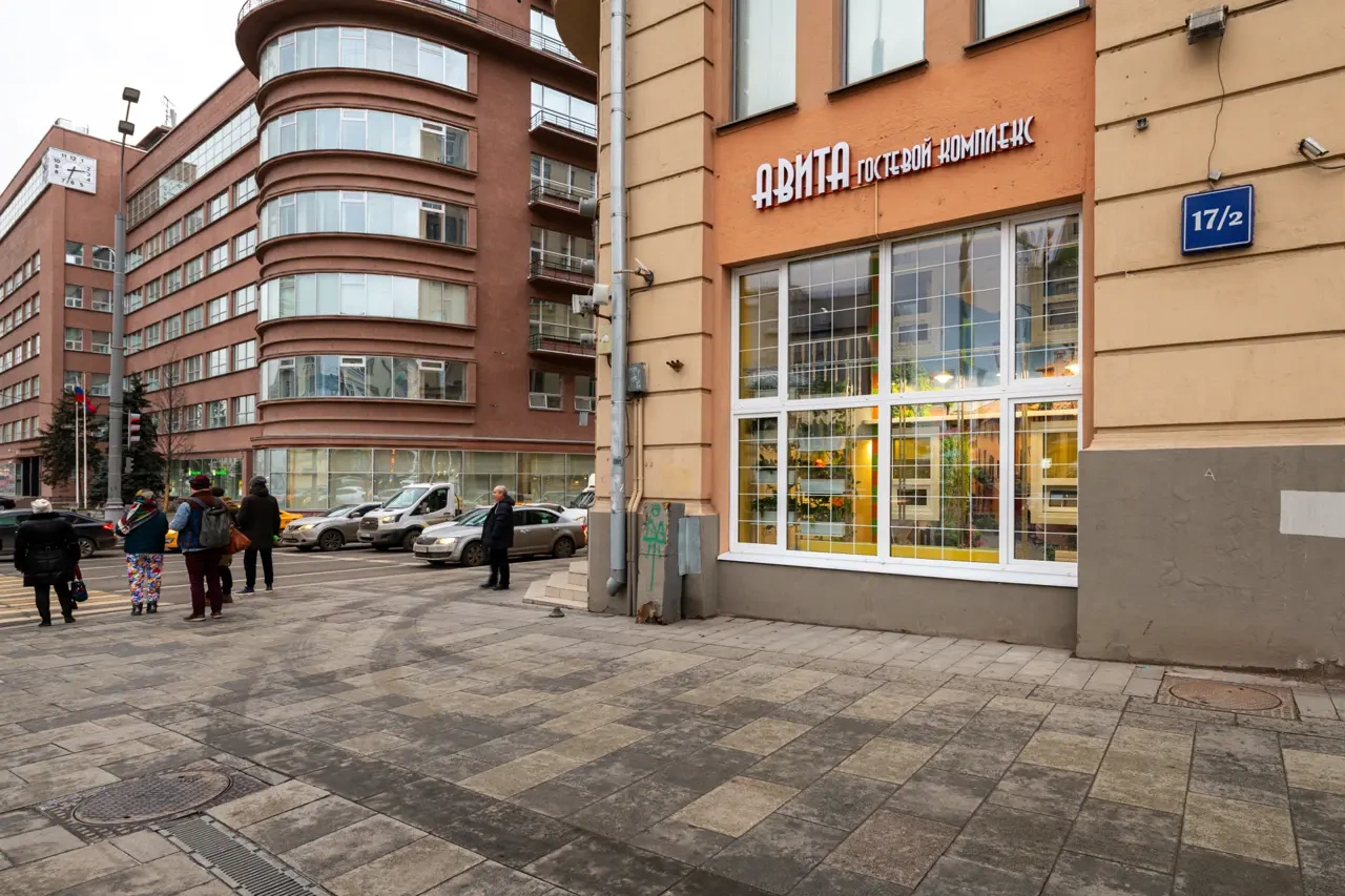 Вход в гостиницу через единый ресепшн Гостевого комплекса АВИТА, со стороны Орликова переулка.