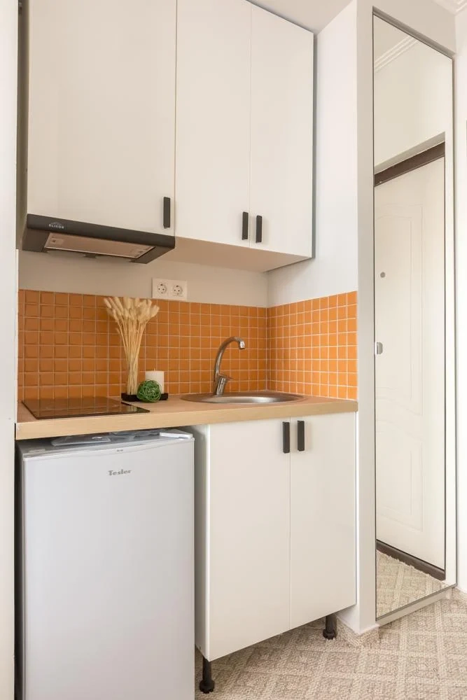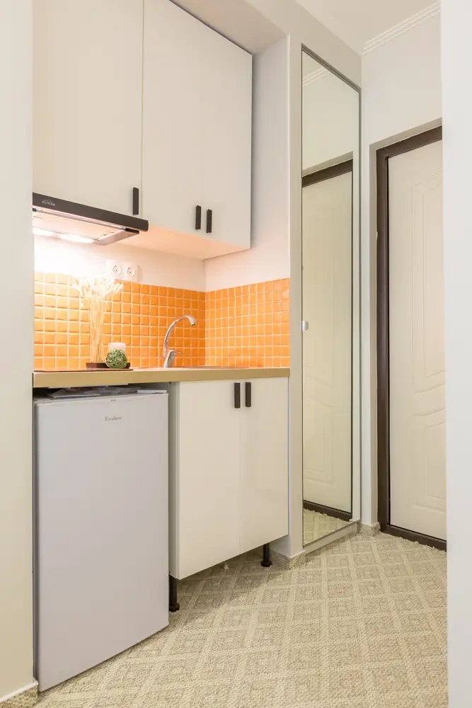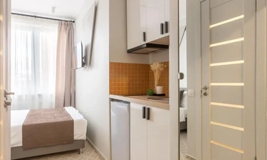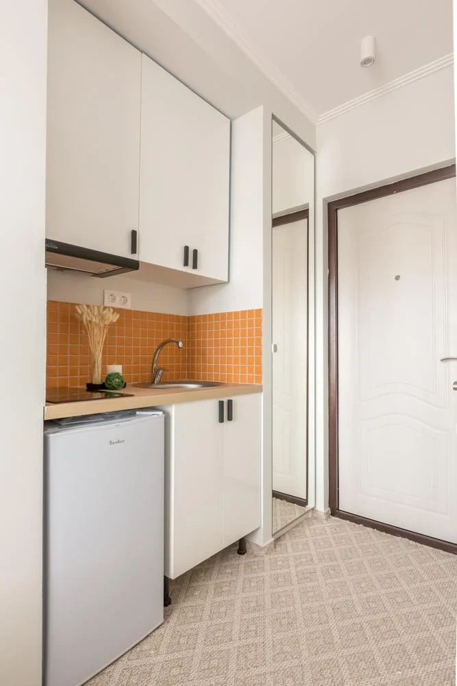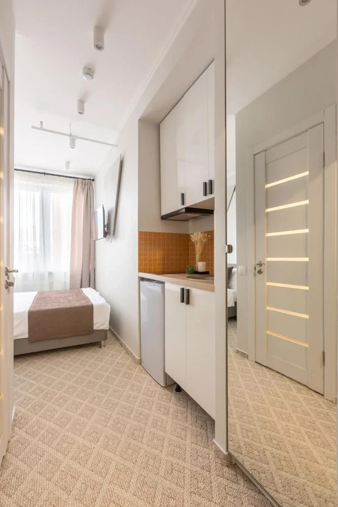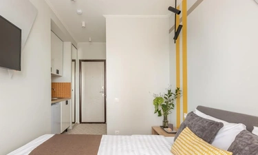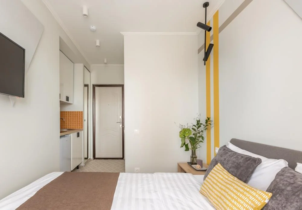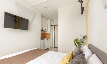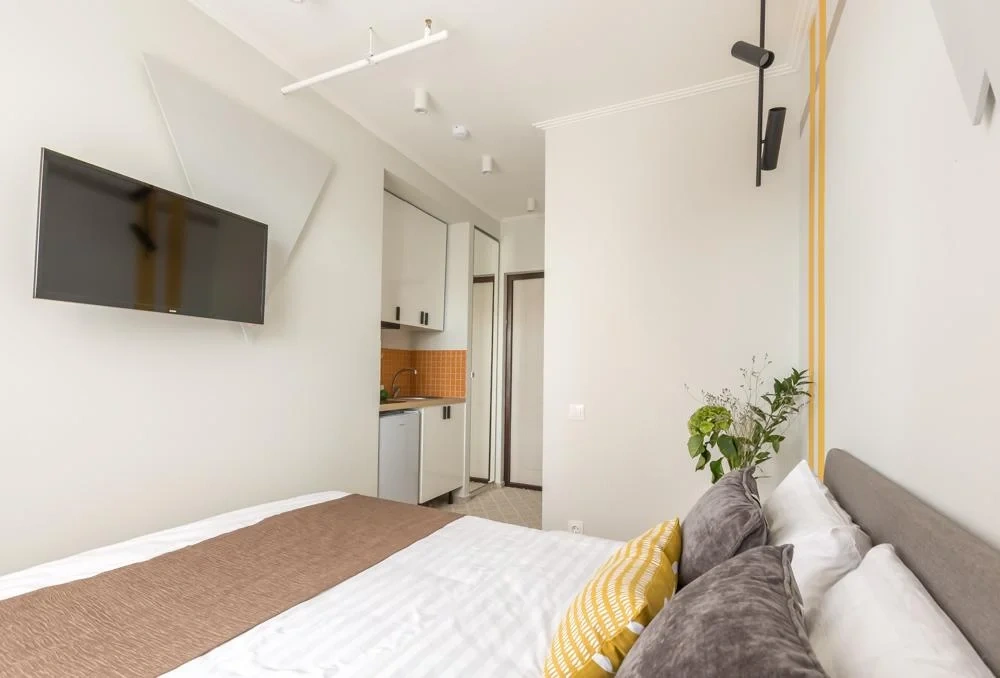 Студия оснащена всем необходимым для комфортного проживания. Бытовая техника: плазменный телевизор, холодильник, электрочайник, микроволновая печь, плита, утюг, фен ,стиральная машина, гладильная доска. Есть вся необходимая посуда для приготовления еды и другие приятные мелочи. В стоимость проживания входит безлимитный высокоскоростной - интернет, белоснежные комплекты белья и полотенец, а также гигиенические принадлежности. В квартире регулярно проводится профессиональная уборка.