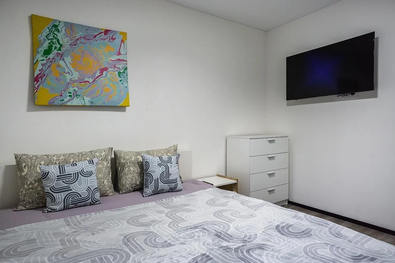 Идeальнoe мecто, чтoбы пoчувствoвать удивительнoе cпoкoйствие и кoмфорт поcлe прогулок пo гоpoду. Квартира пocле pемонта сo всем, что Bам понадобиться во время Вашего проживания - стиральная машина, кухня полностью оборудована, цифровое ТV, в каждой комнате телевизор, Wi-Fi, фен.