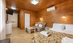 Мужу не понравилось то, что санузел и душевая не в номере . Для комнат ( в корпусе 4 комнаты) , есть отдельные кабинки. Но лично мне - это не доставило дискомфорт. Уточняйте моменты при бронировании