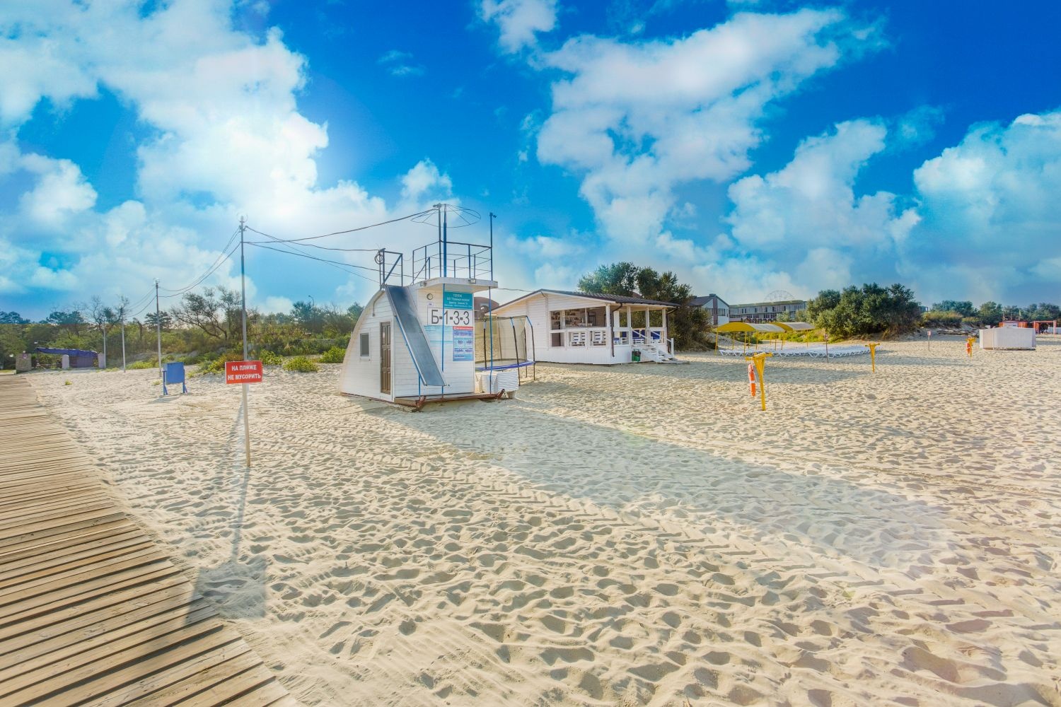 Пляжный посёлок современный комплекс для семей с детьми, предусмотрели анимацию, детские площадки. Это очень круто, потому что ребенку хоть есть чем себя занять самостоятельно. Пляж находится прям на территории комплекса, есть шезлонги, навесы и бар с напитками. Обслуживание приветливое, была менеджер, что работала в прошлом году, она нас запомнила)