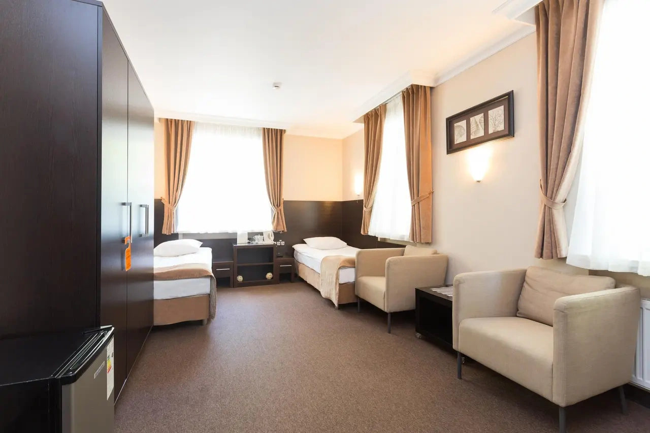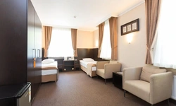 В номере: две раздельные кровати, кондиционер, бесплатный WI-FI, телефон, чайник, набор для чаепития (чай, кофе, сахар), одноразовые тапочки, кабельное ТВ (HDTV), санузел, оригинальная душевая кабина из стекла, выложенная мозаикой. На этаже кулер с холодной водой. Парковка на территории отеля при наличии свободных мест за доп. плату