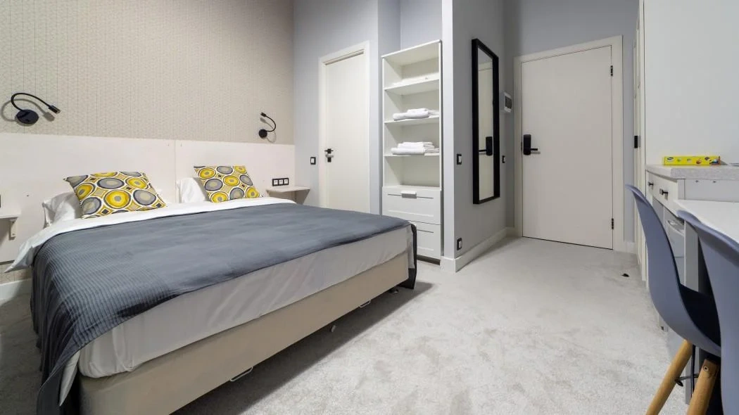прекрасное расположение, близко к центру, рядом с проспектом Мира, но отель во дворе — очень тихо. номер чистый, каждый день убирают, в номере есть все необходимое (холодильник, чайник, чай, вода, фен, полотенца, тапочки и тд), есть услуги прачечной. быстрое заселение, выселение бесконтактное. прекрасный персонал. спасибо!
