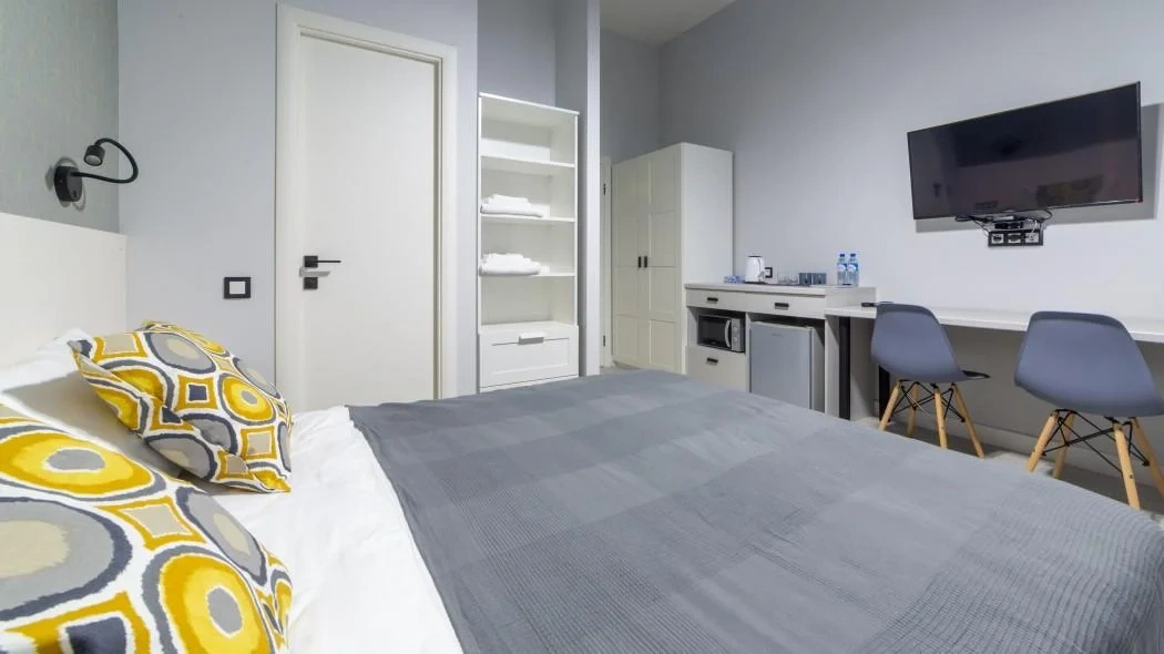 Хороший отель для своей ценовой категории, выгодное расположение ???? учитываем, что это столица. В номере удобная двухспальная кровать, рабочий телевизор, холодильник, микроволновая печь, эл.чайник. Вежливый персонал.