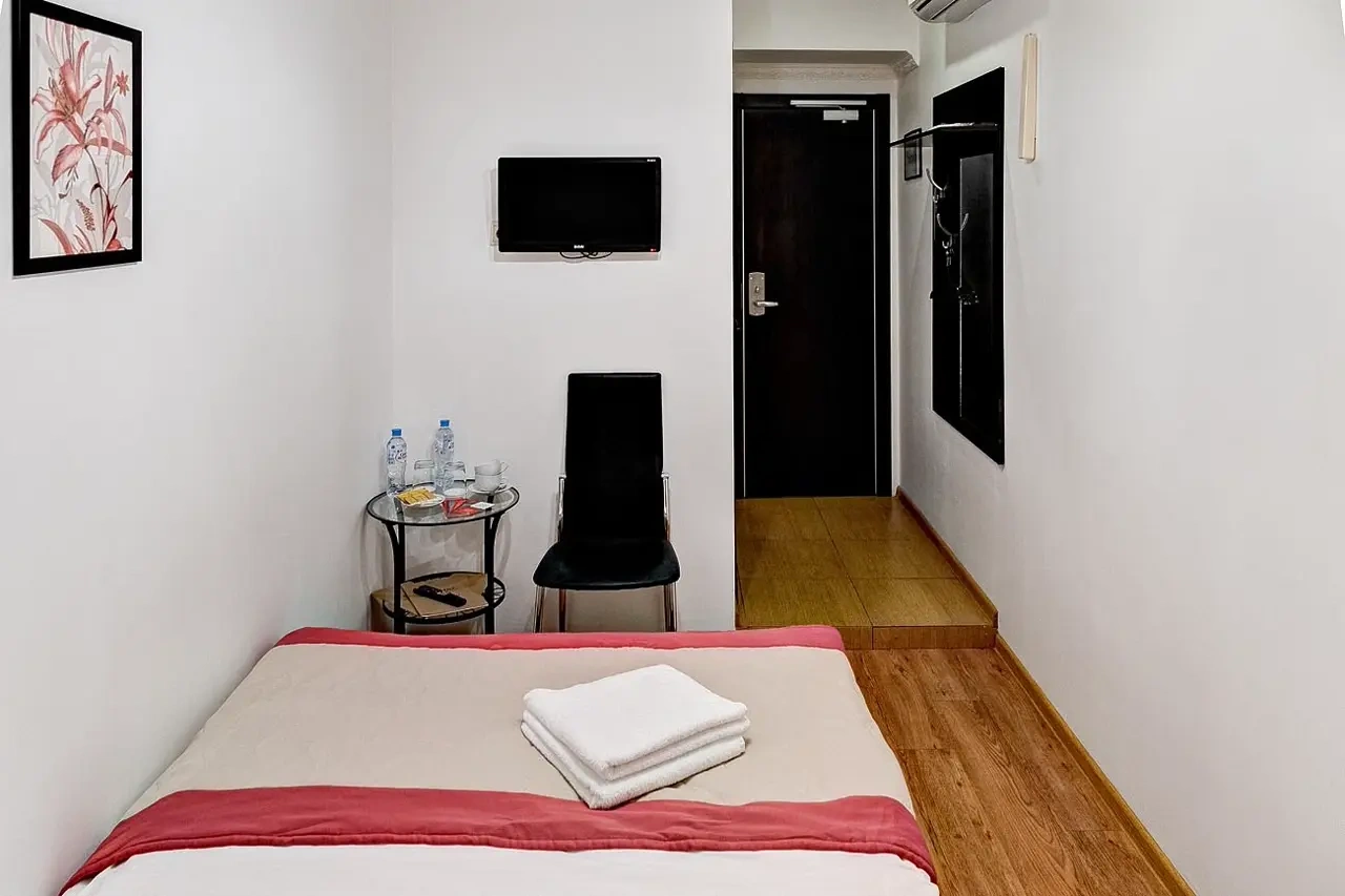 Самый ужасный отель в котором я была! Не рекомендую и советую перед тем , как бронировать учесть отрицательные (реальные) отзывы. В номере было находиться мягко говоря , не приятно, воняет старьем, все обшарпано, гнилое, запинаешься об косяки потому что они просто вырваны. В ванной комнате моешься просто на полу (естественно ни в коем случае только не голыми ногами) и вся вода стекает даже в коридор. Слив плохой , огромные лужи от этого, что больше даже в туалет не зайдешь, там одна вода. Персонал… взяли доплату за гостя , хотя я бронировала двухместный номер! Отмена была платной, поэтому пришлось оплачивать. На мой вопрос , чем они руководствуются, никаких адекватных комментариев не было , кроме как «у нас такие правила». Сказали, что после 22:00 они имеют право проверять номера на наличие гостей. Сказать , что я в шоке , это ничего не сказать. Нот в одной гостинице Москвы , в которых я была , такой чуши не было. Слышимость, конечно, лютая, но я была готова, лишь бы было чисто и соответствовало бы заявленному. В номере нет ни утюга , ни чайника, ни щеток , ни других подобных минимальных наборов. Лежит пару пакетиков чая и вода по 0.33 на двоих, очевидно, что их куллера, который стоит в коридоре, там же надо брать и горячую воду. Ни к чему не хотелось прикасаться, находились в номере только 4 часа, больше просто НЕВОЗМОЖНО. Номер не дешевый, чтобы сказать, ну сами такой выбрали, за ночь стоит 5.430 рублей. В таком виде, как у них, цена этого номера не больше 3.000 и это только с учетом того, в каком районе он находится, и что очень близко к белорусскому вокзалу.