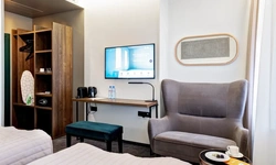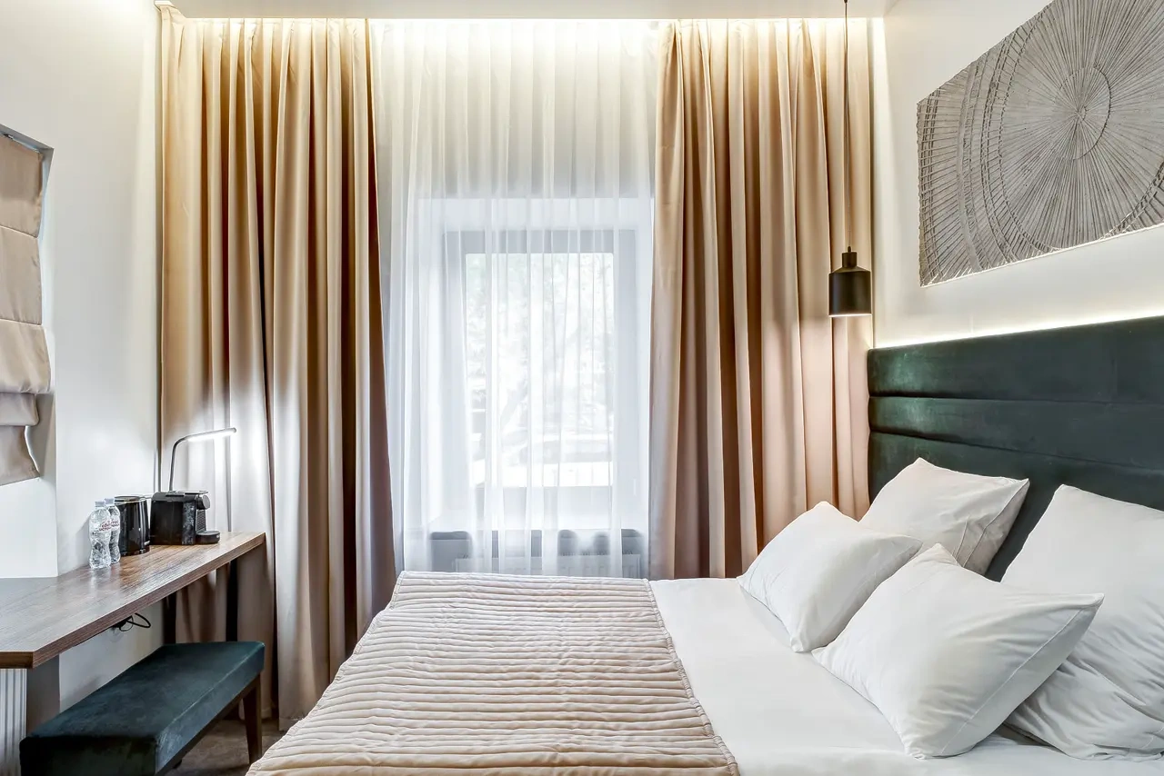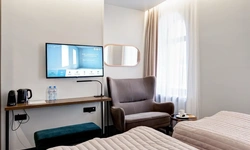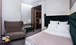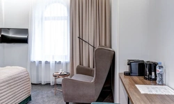 Номер категории «Супериор» – оптимальный вариант как для рабочей поездки или встречи с деловыми партнерами, так и для романтического отдыха. Номер "Супериор" - просторный и комфортный, с тщательно продуманным интерьером — здесь есть все, что может понадобиться вам во время отдыха. Площадь номера составляет 17 м². Он оборудован удобной кроватью с мягким матрасом и свежим постельным бельем, где вы сможете отдохнуть после насыщенного дня. В номере - рабочая зона с удобным письменным столом и стулом. Для вашего удобства в номере "Супериор" есть телевизор с широким выбором каналов, чтобы вы могли насладиться своими любимыми программами или фильмами. Также есть высокоскоростной Wi-Fi, мини холодильник, чайная станция, кофемашина, индивидуальный сейф для ценных вещей и документов. В собственной ванной комнате с душем вы найдете все необходимые туалетно-косметические принадлежности, включая полотенца, халаты, шампунь, гель для душа, мыло и фен. Номера категории "Супериор" предлагают пространство, где вы сможете отдохнуть и расслабиться после долгого дня. Они идеально подходят для комфортного отдыха во время туристической или деловой поездки в столицу.
