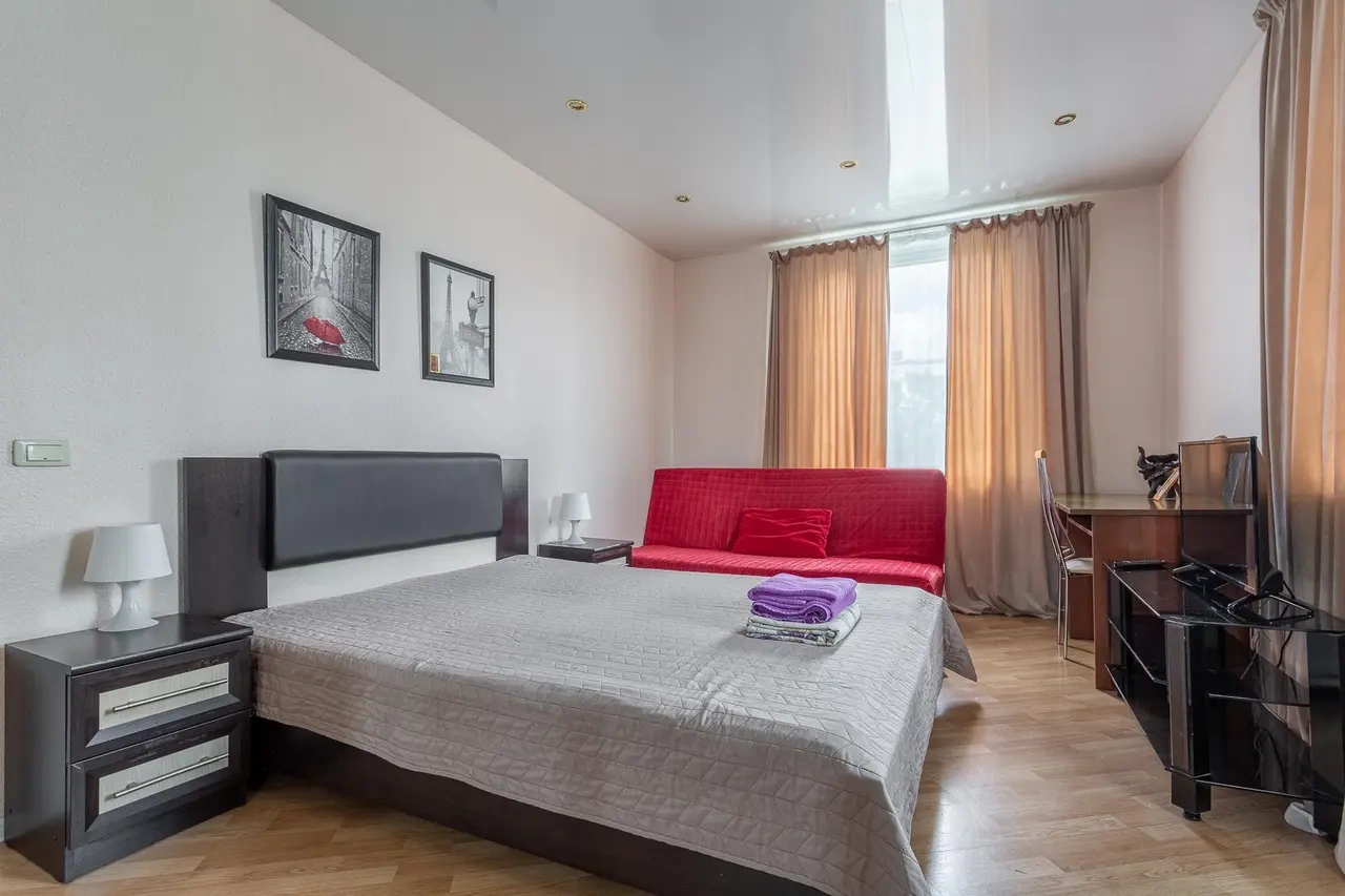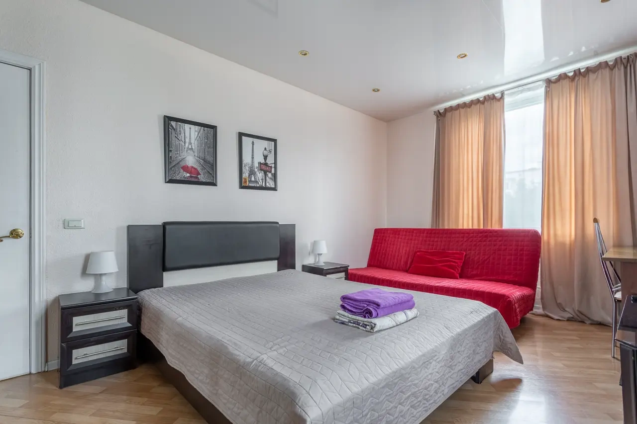 Светлая, просторная 1 комнатная квартира, в 8 мин от метро, чистый подъезд. Квартира с современным ремонтом. Оснащена всем необходимым для Вашего комфортного проживания. Спальное место кровать 1.6 м х 2.0 м + диван , высокоскоросной интернет, ТВ, бытовая техника, постельное белье и полотенца к Вашим услугам.