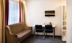 Номер категории «Бизнес» – оптимальный вариант как для рабочей поездки или встречи с деловыми партнерами, так и для романтического отдыха. Номер "Бизнес" - просторный и комфортный, с тщательно продуманным интерьером — здесь есть все, что может понадобиться вам во время отдыха. Площадь номера составляет 14 м². Он оборудован удобной кроватью 160см ( или две кровати по 90см) с мягким матрасом и свежим постельным бельем, где вы сможете отдохнуть после насыщенного дня. В номере - рабочая зона с удобным письменным столом и стулом. Для вашего удобства в номере "Бизнес" есть телевизор с широким выбором каналов, чтобы вы могли насладиться своими любимыми программами или фильмами. Также есть высокоскоростной Wi-Fi, мини холодильник, чайная станция, индивидуальный сейф для ценных вещей и документов. В собственной ванной комнате с душем вы найдете все необходимые туалетно-косметические принадлежности, включая полотенца, шампунь, гель для душа, мыло и фен. Номера категории "Бизнес" предлагают пространство, где вы сможете отдохнуть и расслабиться после долгого дня. Они идеально подходят для комфортного отдыха во время туристической или деловой поездки в столицу.