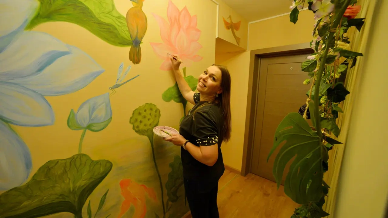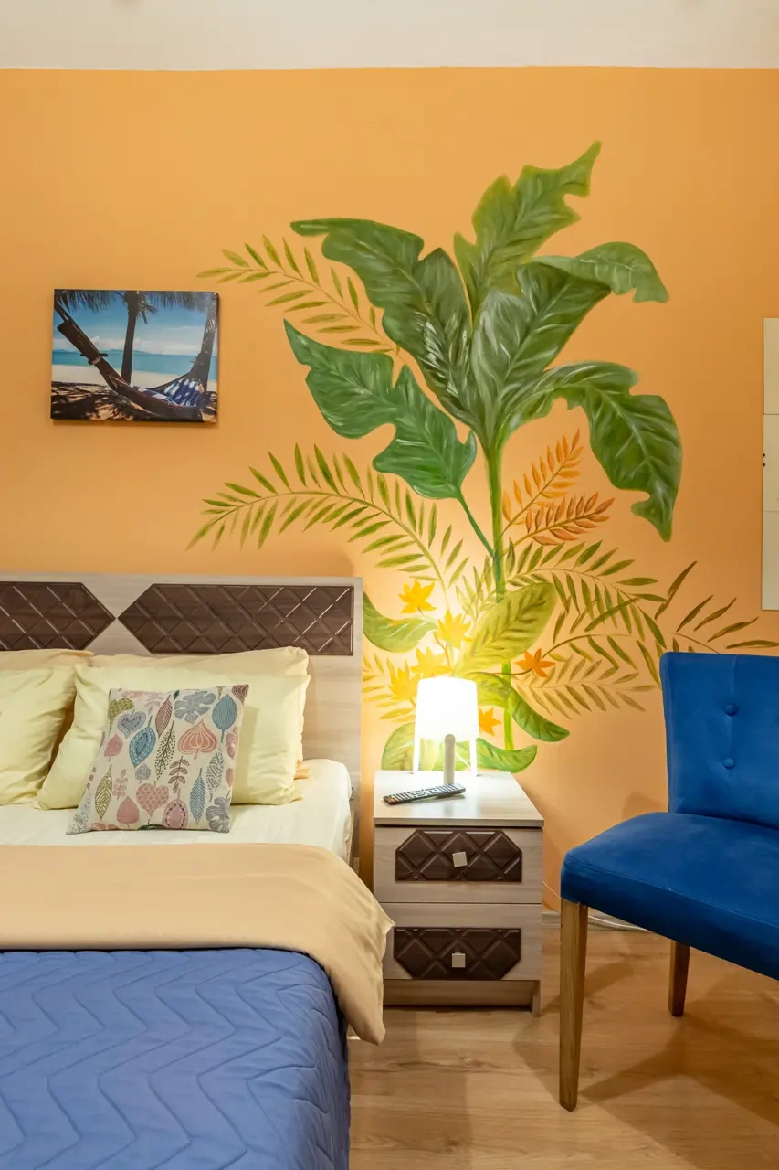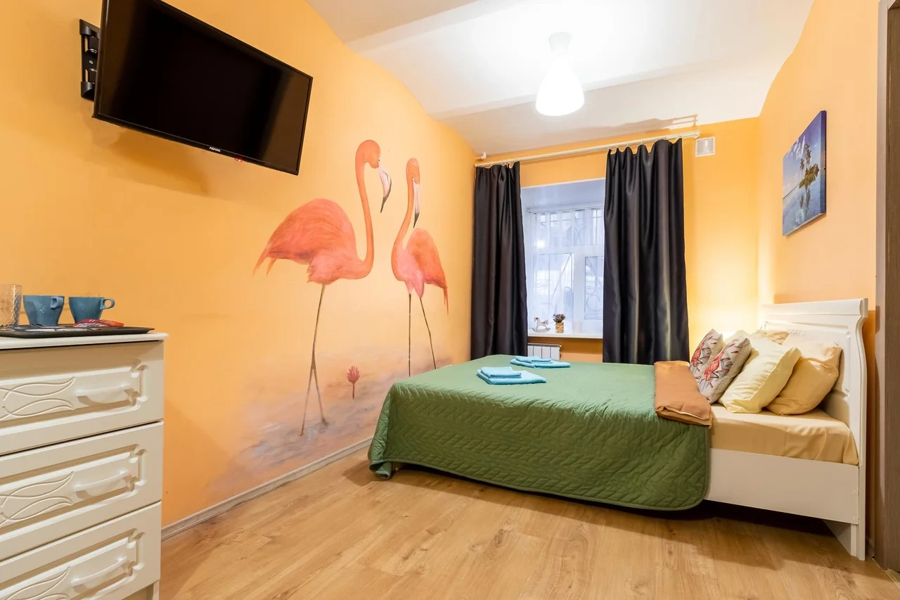 Каждый номер нашего отеля имеет индивидуальный дизайн, стены превращены в огромные картины с позитивными жизнеутверждающими мотивами. В этом двухместном номере могут разместиться до 3-х человек. В номере 1 двуспальная кровать и удобное раскладывающееся кресло. Номер оснащен всем необходимым: постельное белье, полотенца, телевизор с плоским экраном, бесплатный Wi-Fi, электрический чайник с чайными принадлежностями, фен, туалетно-косметические принадлежности, тапочки. В общем доступе гостей имеется холодильник, микроволновая печь, стиральная машина (за отдельную плату). Номер имеет собственную ванную комнату/туалет.