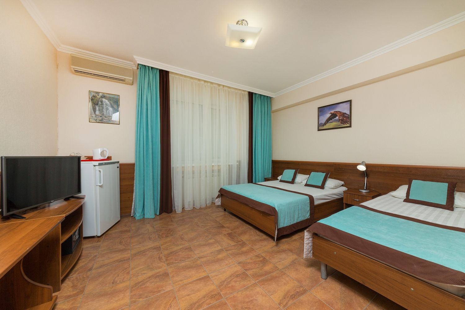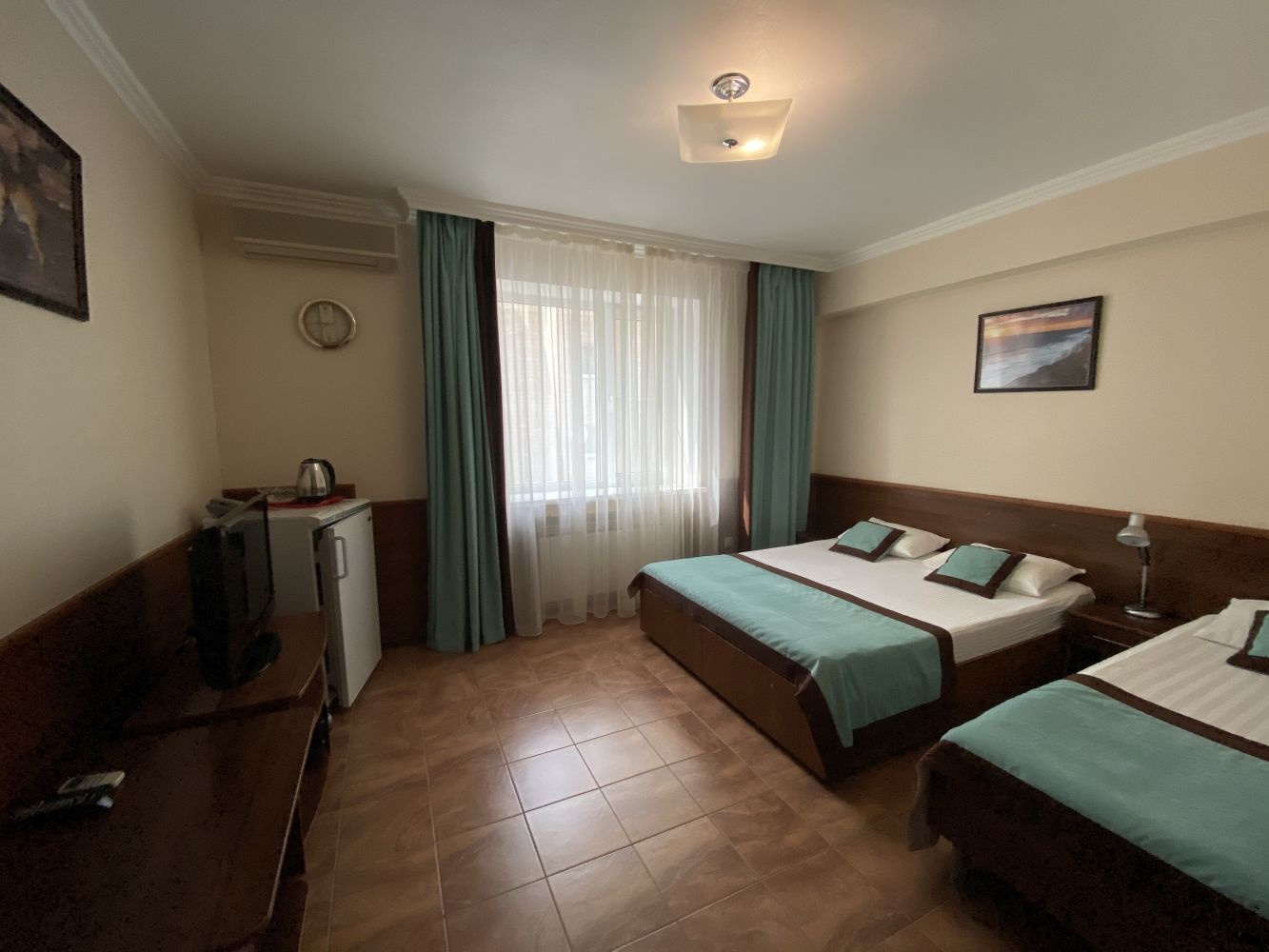 Отличное расположение. Рядом набережная, парки аттракционов. В шаговой доступности множество кафе, столовая. Магазин пятёрочка прям за углом. Номера большие, светлые. Чистый просторный санузел. Всегда горячая вода. Белоснежная постель. Холодильник, телевизор всё работает. Не хватает чайника, но на этаже есть киллер с горячей и холодной водой. В общем номер полностью совпадает с фото и описанием. Прекрасная сауна с 2 парилками (дерево и хамам) и бассейном. За доп. плату. Вежливый приятный персонал. Любим приезжать в эту гостиницу в межсезонье (зима, ранняя весна) Когда хочется отдохнуть от суеты и насладиться красотой моря.