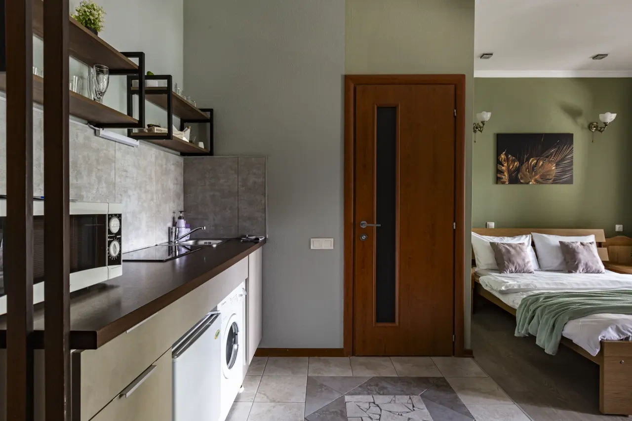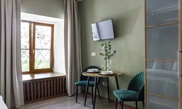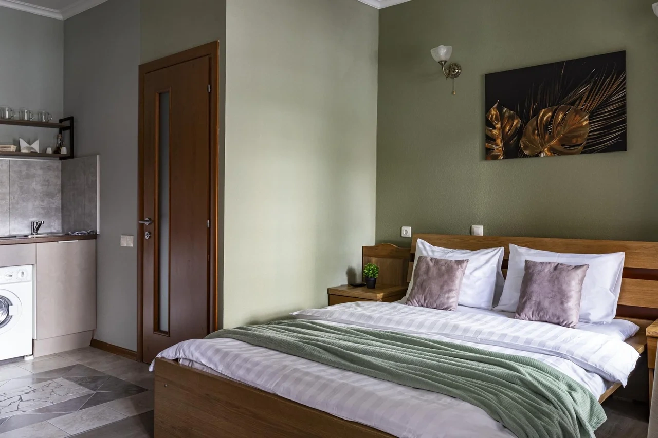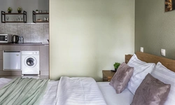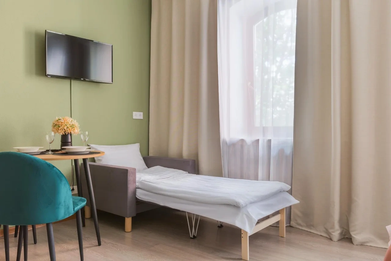 Комфортабельная студия 24 кв.м. для проживания 3 человек в самом центре Санкт-Петербурга с окнами на тихую улицу. Студия оснащена современной мебелью и техникой для полноценного комфортного краткосрочного и длительного проживания. В студии гармонично расположена спальная зона с двуспальной кроватью или двумя односпальными кроватями и ортопедическим матрасом, кресло - кровать, кухня и свой сан.узел. Кухня оснащена посудой, чайником, электрической плитой, мини холодильником. Мы предоставляем для Вас свежее постельное белье, полотенца, косметические принадлежности в день заселения, средства для чистки одежды, губки и сушильные приборы для обуви. Самое главное – студия оснащена электронным замком, что позволяет организовать для Вас бесконтактное заселение. За один день до заезда Вы получите код для замка, которым сможете пользоваться в течение всего проживания. Так же, в целях безопасности, общие зоны оборудованы видеокамерами.