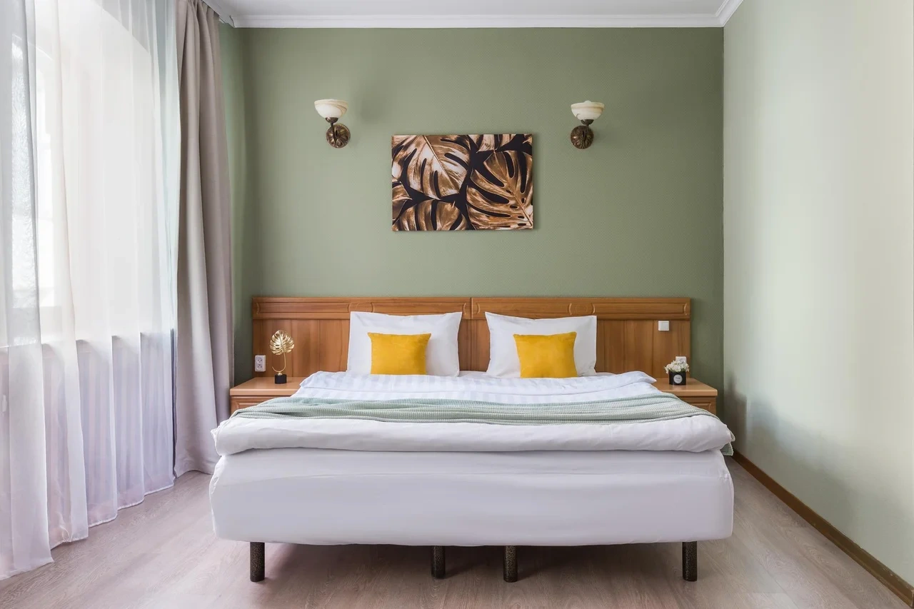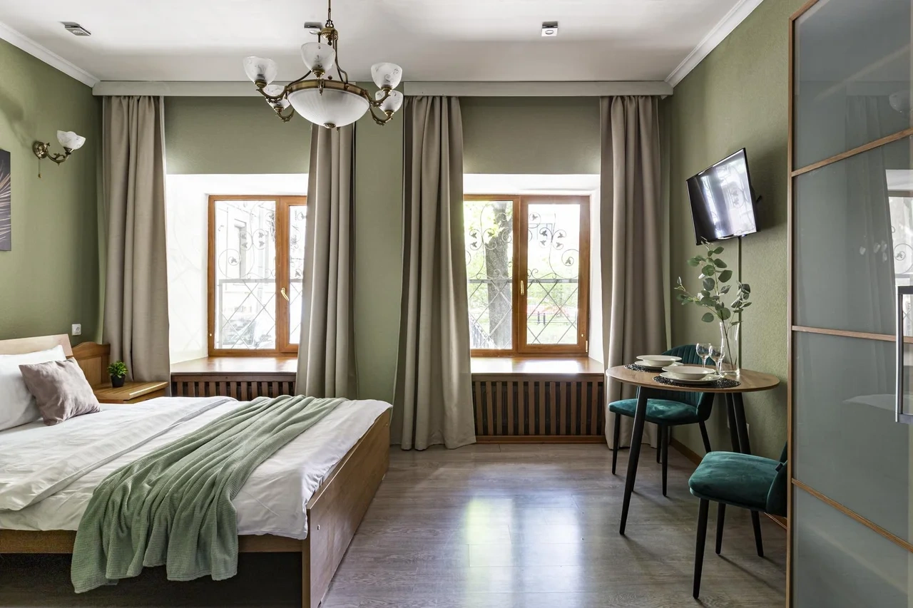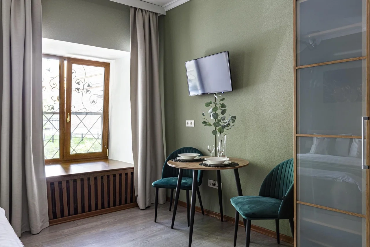 Комфортабельная студия 24 кв.м. для проживания 3 человек в самом центре Санкт-Петербурга с окнами на тихую улицу. Студия оснащена современной мебелью и техникой для полноценного комфортного краткосрочного и длительного проживания. В студии гармонично расположена спальная зона с двуспальной кроватью или двумя односпальными кроватями и ортопедическим матрасом, кресло - кровать, кухня и свой сан.узел. Кухня оснащена посудой, чайником, электрической плитой, мини холодильником. Мы предоставляем для Вас свежее постельное белье, полотенца, косметические принадлежности в день заселения, средства для чистки одежды, губки и сушильные приборы для обуви. Самое главное – студия оснащена электронным замком, что позволяет организовать для Вас бесконтактное заселение. За один день до заезда Вы получите код для замка, которым сможете пользоваться в течение всего проживания. Так же, в целях безопасности, общие зоны оборудованы видеокамерами.