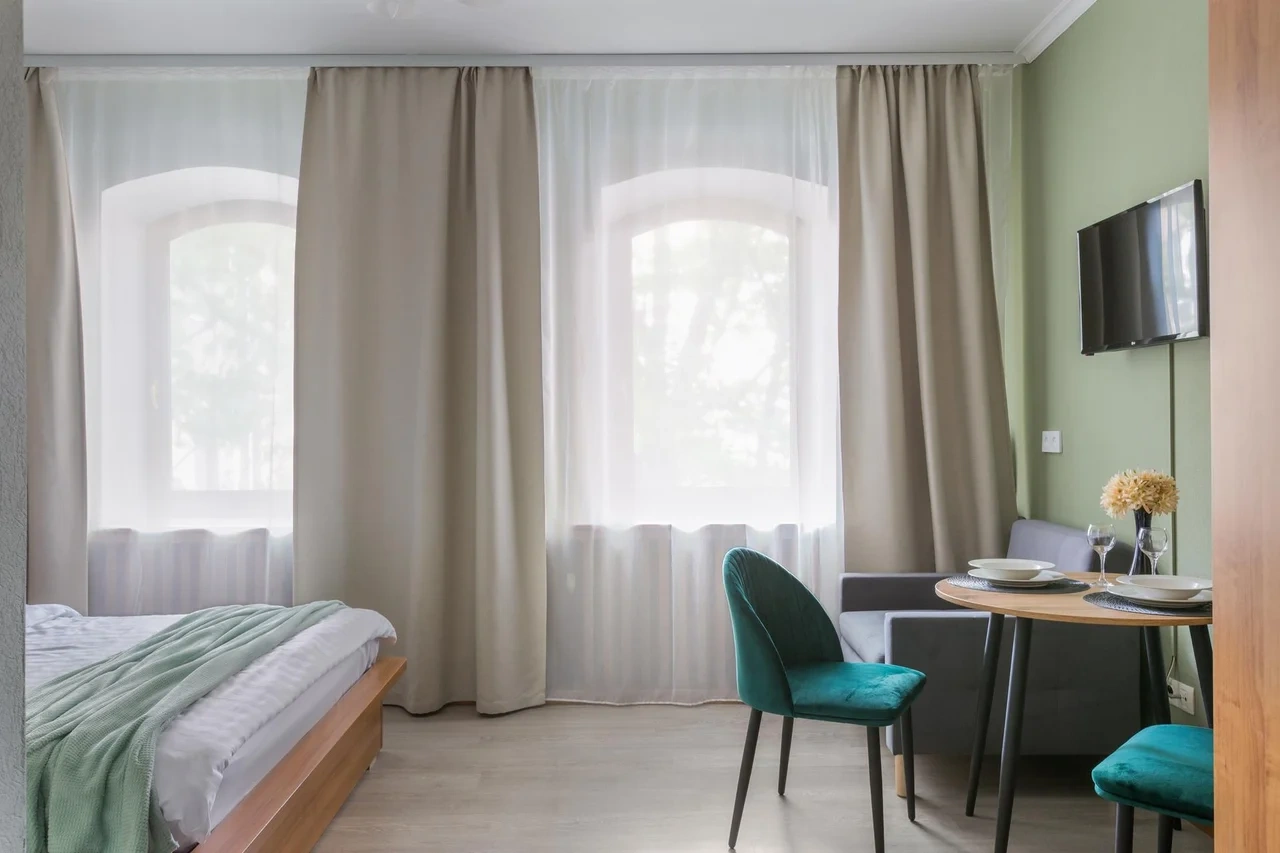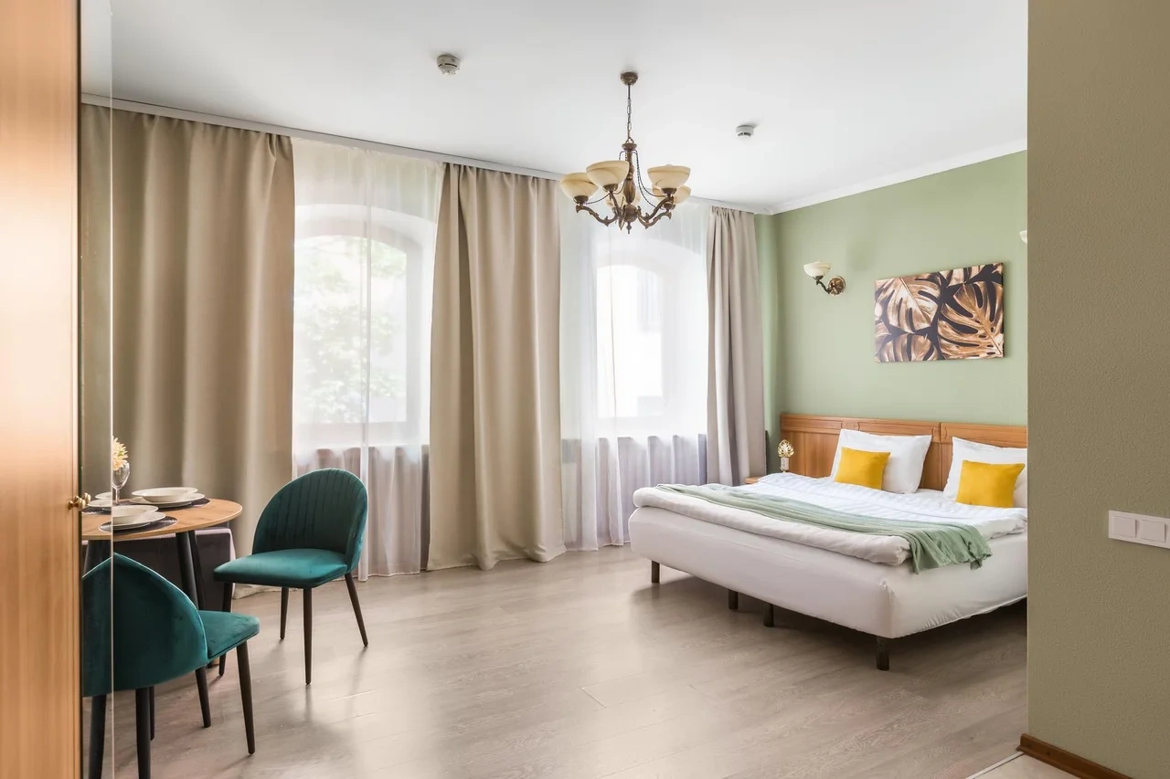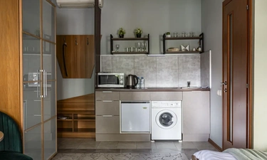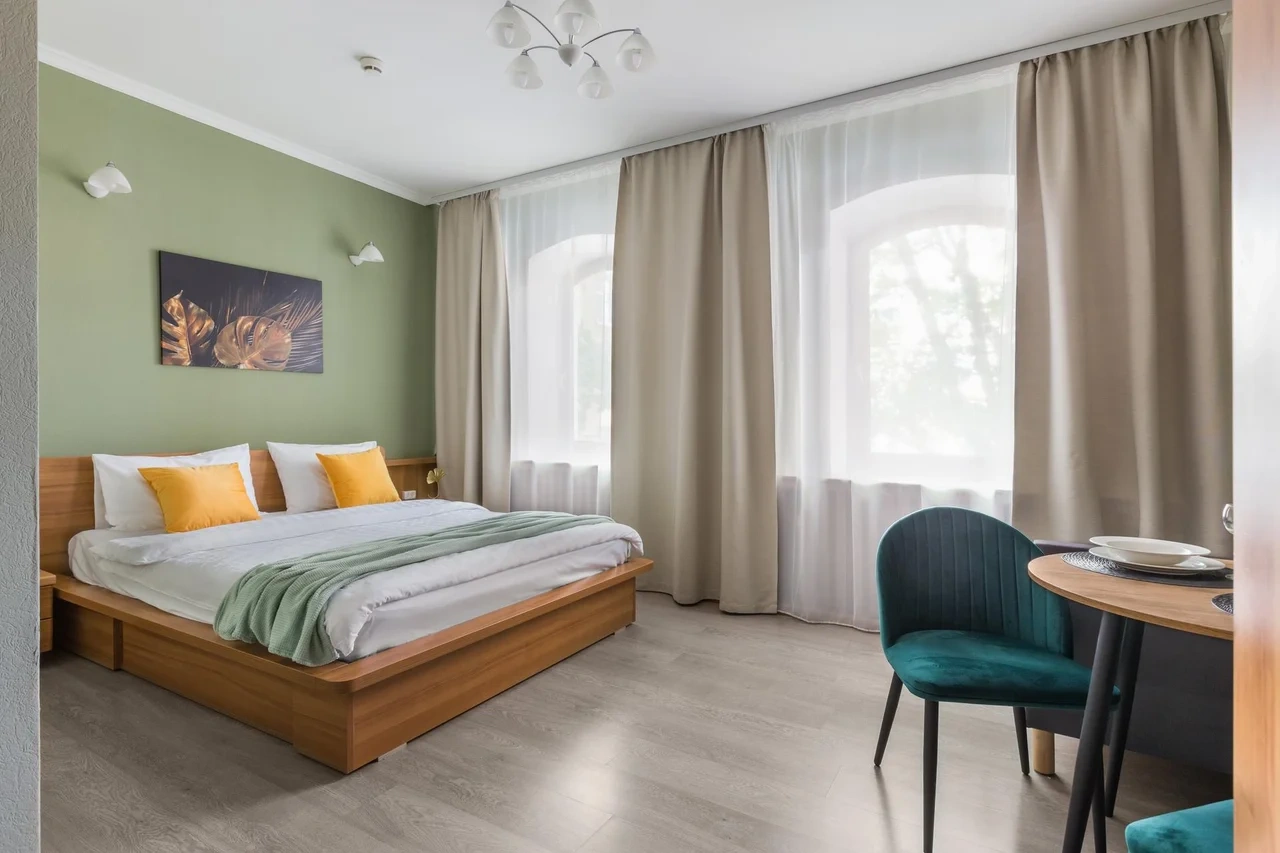 Комфортабельная студия 20 кв.м. для проживания 2 человек в самом центре Санкт-Петербурга с окнами на тихую улицу. Студия оснащена современной мебелью и техникой для полноценного комфортного краткосрочного и длительного проживания. В студии гармонично расположена спальная зона с двуспальной кроватью или двумя односпальными кроватями и ортопедическим матрасом, кухня и свой сан.узел. Кухня оснащена посудой, чайником, электрической плитой, мини холодильником. Мы предоставляем для Вас свежее постельное белье, полотенца, косметические принадлежности в день заселения, средства для чистки одежды, губки и сушильные приборы для обуви. Самое главное – студия оснащена электронным замком, что позволяет организовать для Вас бесконтактное заселение. За один день до заезда Вы получите код для замка, которым сможете пользоваться в течение всего проживания. Так же, в целях безопасности, общие зоны оборудованы видеокамерами.