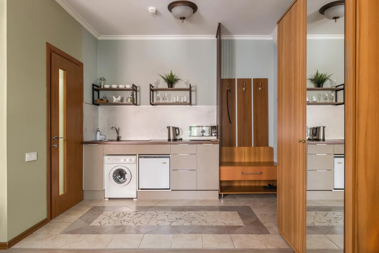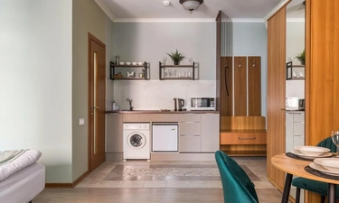 Комфортабельная студия 24 кв.м. для проживания 3 человек в самом центре Санкт-Петербурга с окнами на тихую улицу. Студия оснащена современной мебелью и техникой для полноценного комфортного краткосрочного и длительного проживания. В студии гармонично расположена спальная зона с двуспальной кроватью и ортопедическим матрасом, кресло - кровать, кухня и свой сан.узел. Кухня оснащена посудой, чайником, электрической плитой, мини холодильником. Мы предоставляем для Вас свежее постельное белье, полотенца, косметические принадлежности в день заселения, средства для чистки одежды, губки и сушильные приборы для обуви. Самое главное – студия оснащена электронным замком, что позволяет организовать для Вас бесконтактное заселение. За один день до заезда Вы получите код для замка, которым сможете пользоваться в течение всего проживания. Так же, в целях безопасности, общие зоны оборудованы видеокамерами.