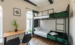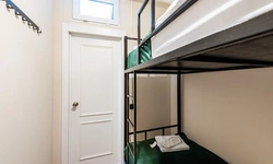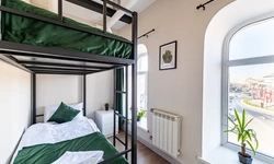 Отдельный уютный двухместный номер с двухъярусной кроватью без окна. В номере есть окно, тумба, крючки для одежды. В общей зоне имеются кухня и санузлы с душевыми кабинами, стиральная машина. Интернет на всей территории отеля.