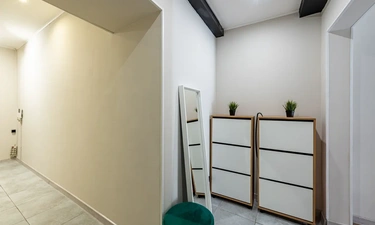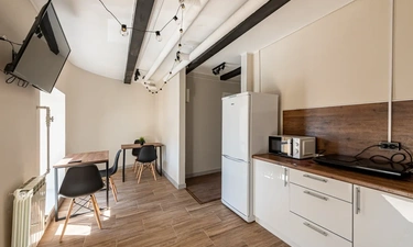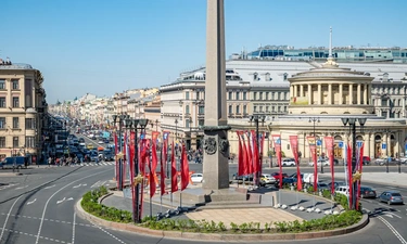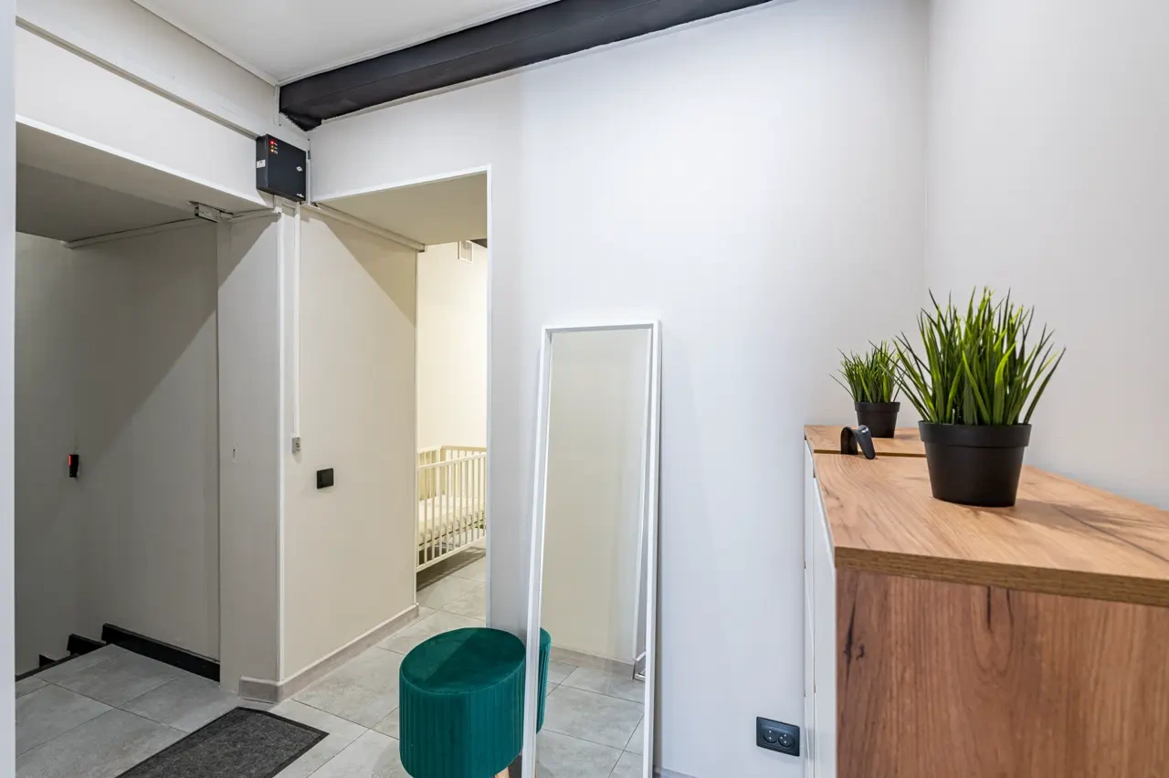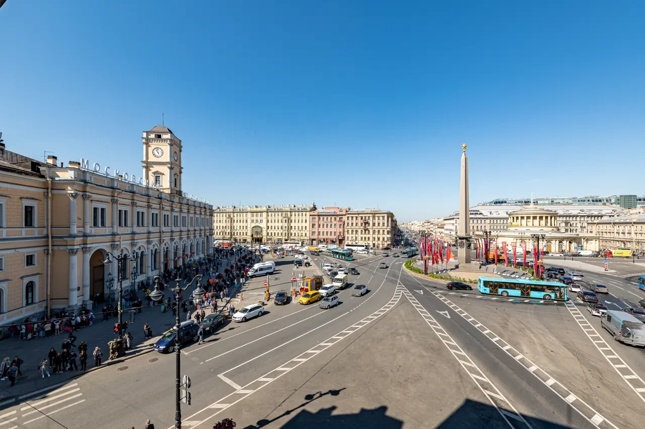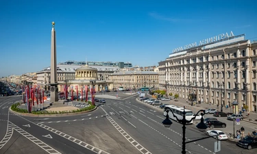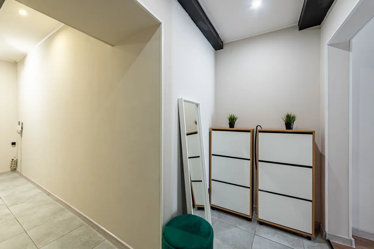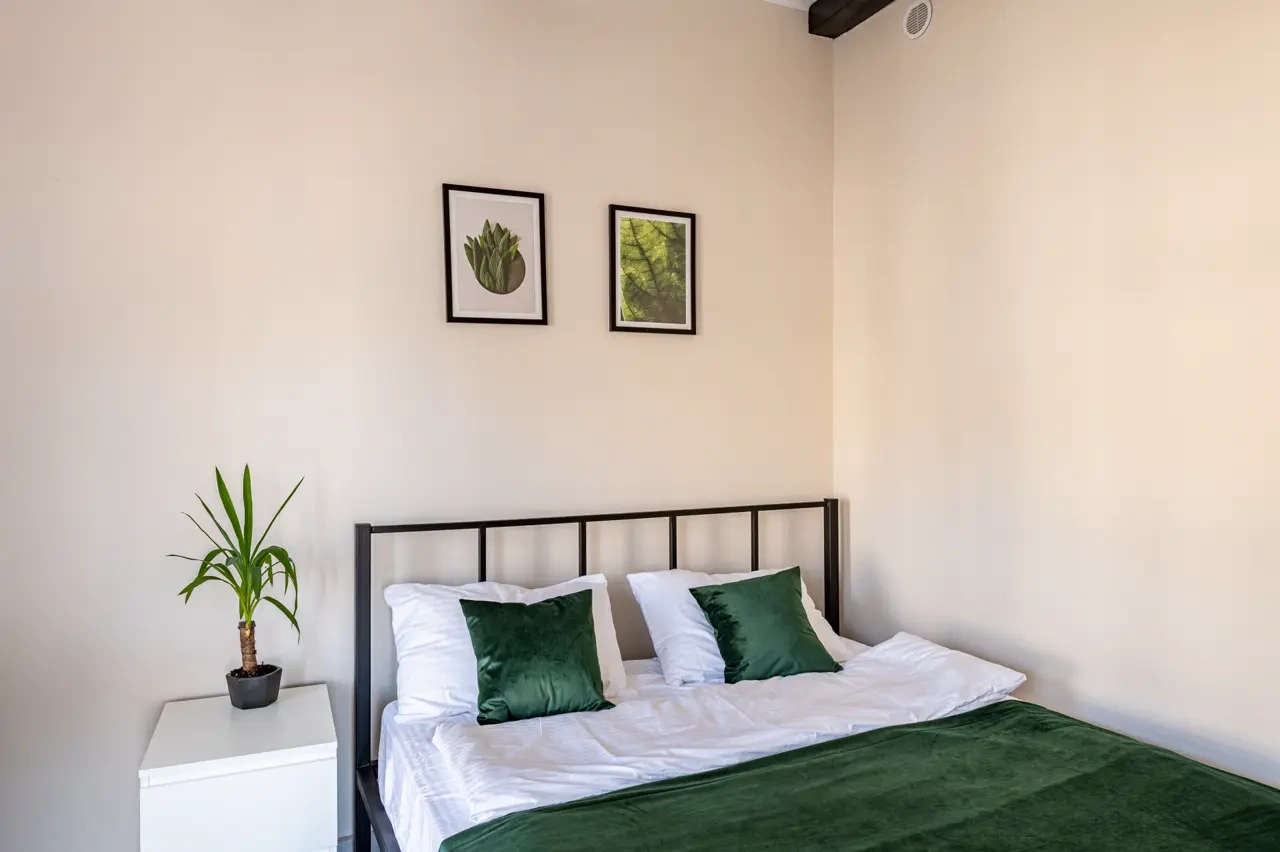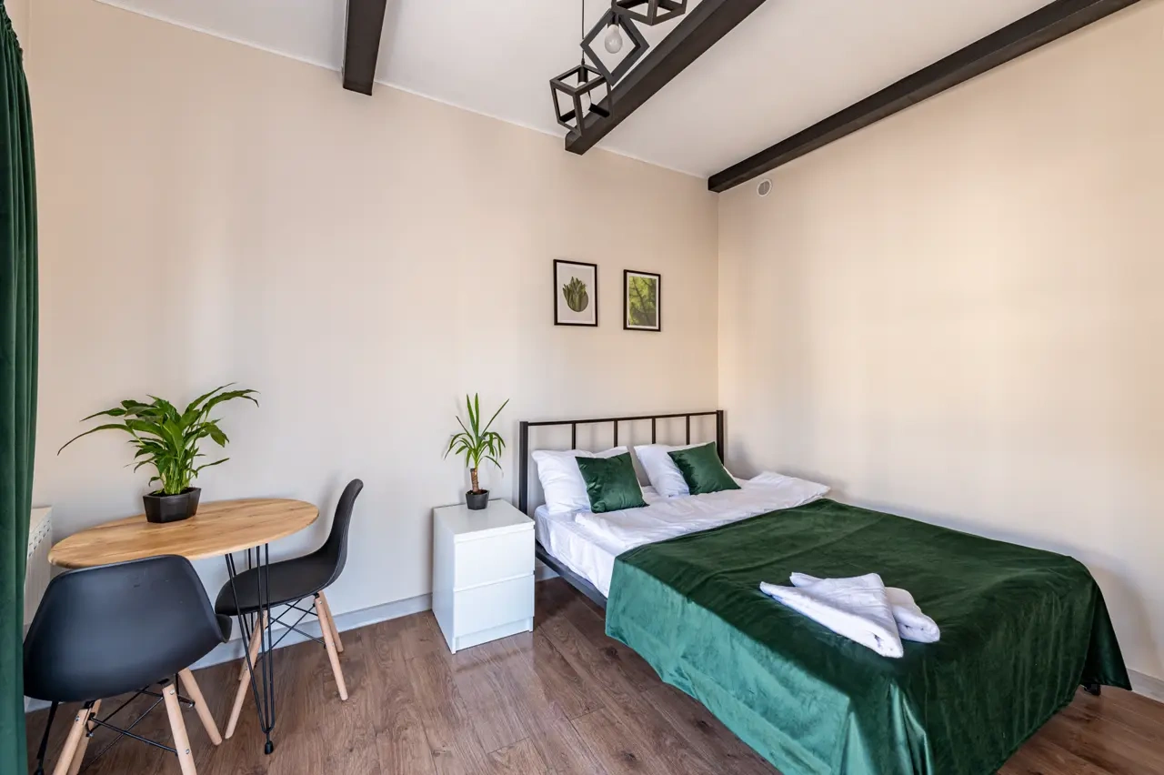 Barch rooms. Отдельный уютный двухместный номер с двуспальной кроватью с окном и видом на площадь Восстания. В номере есть тумба, крючки для одежды.