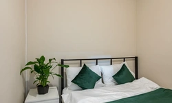 Barch rooms. Отдельный уютный двухместный номер с двуспальной кроватью. В номере есть тумба, крючки для одежды.